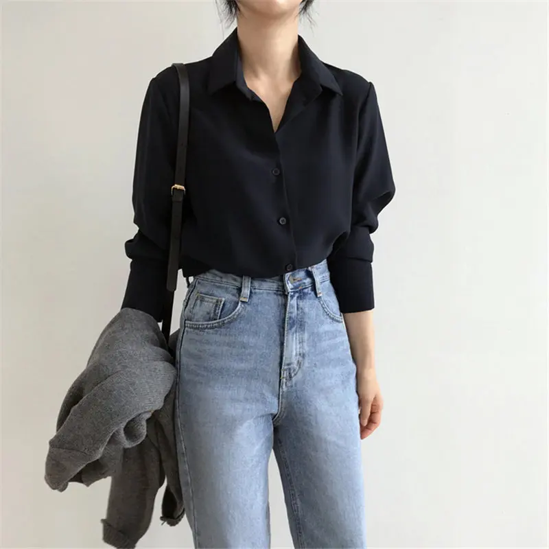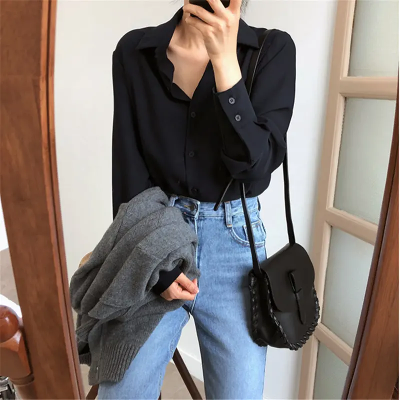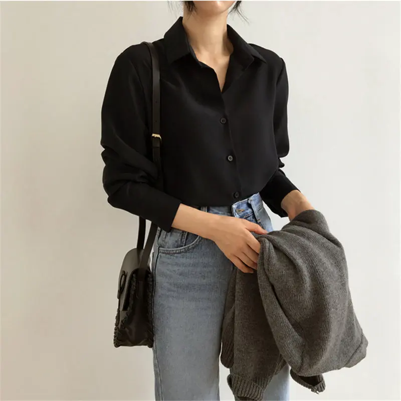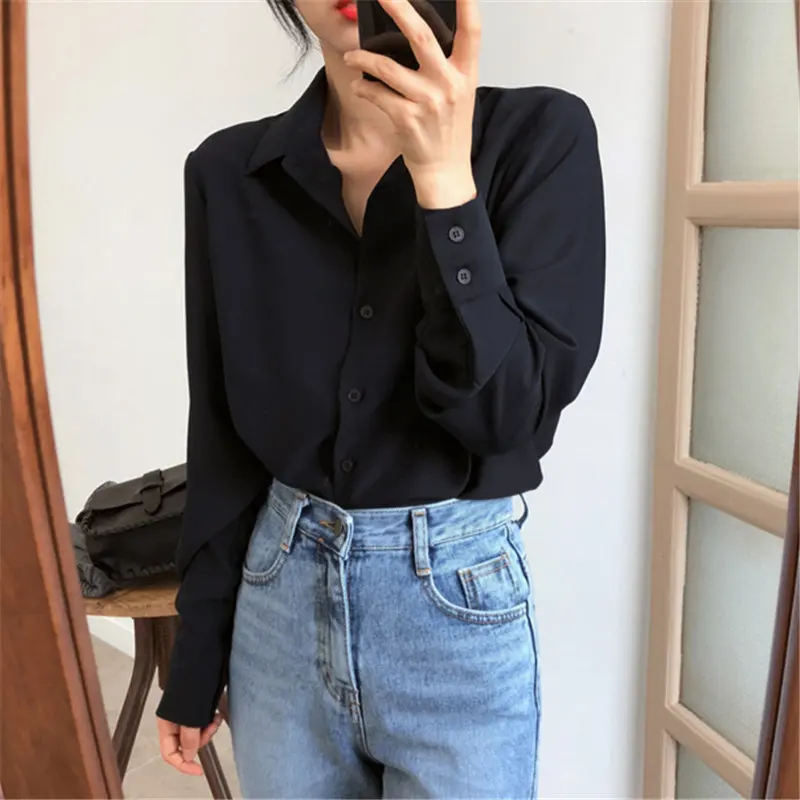 Женская блузка Hzirip, однотонная, свободная, деловая, тонкая, в Корейском стиле
