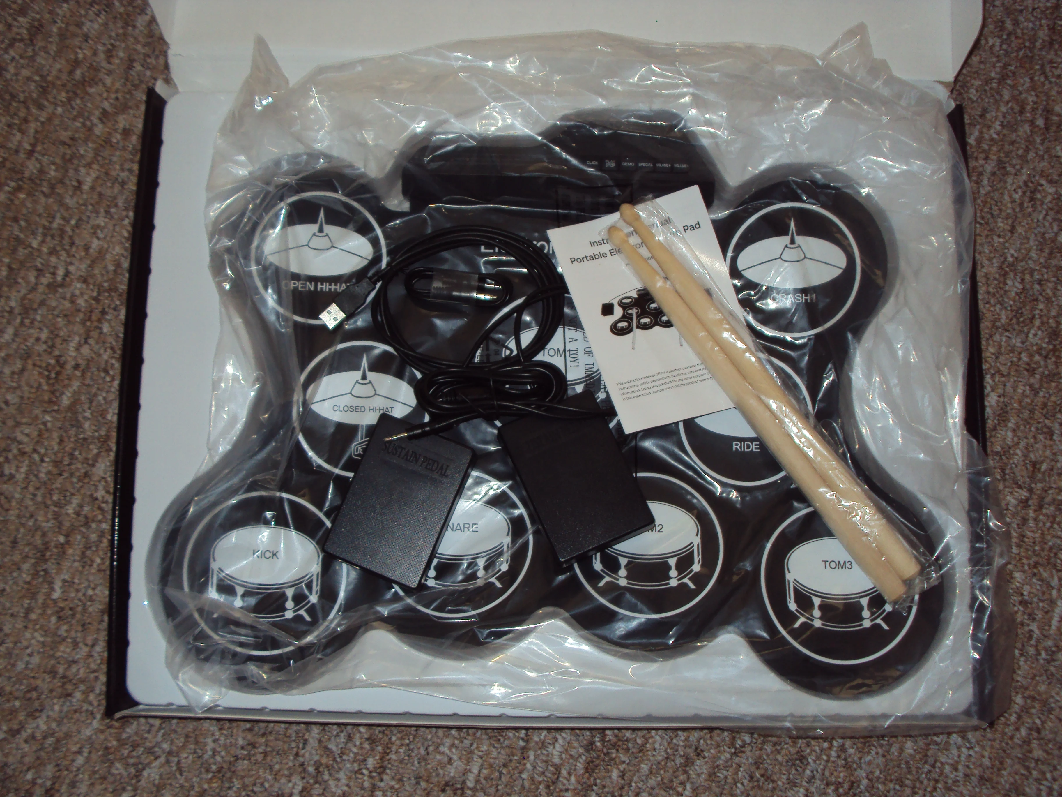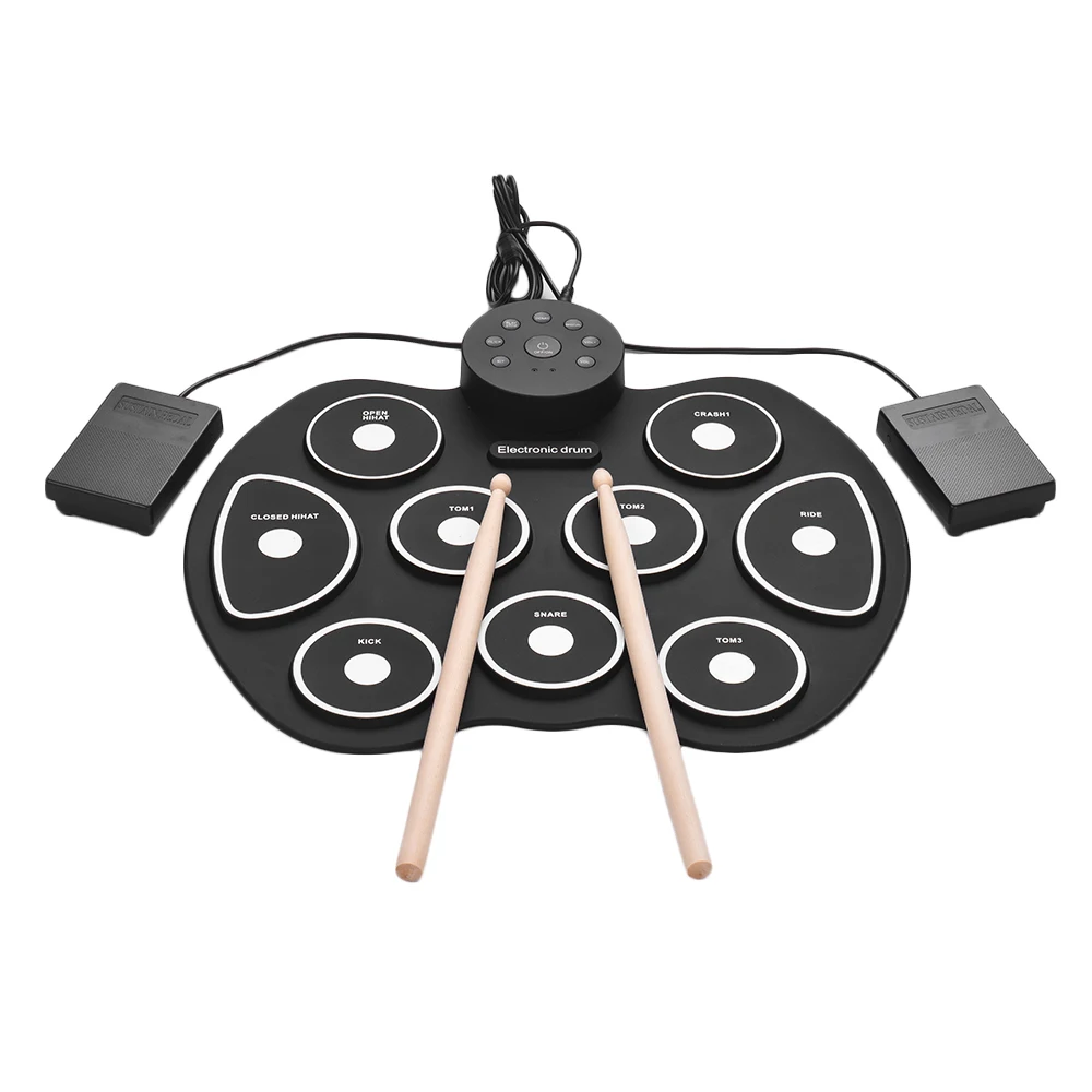 Особенности:Портативный электронный барабан, специально разработанный для обучения и практики детей или начинающих.С 9 удобными силиконовыми барабанными подушечками, включая Tom(3)/Snare/Hi-Hat(2)/ночлег/езду/удар, издает отличные звуки и имитирует настоящий эффект биения.Без динамика вам нужно подключить его к внешнему динамику, чтобы наслаждаться звуком, а чтобы не беспокоить окружающих, вы также можете подключить наушники, когда играете в барабан.Встроенные 5 тонов барабана и 8 Демо-песен; С входом MP3 для подключения MP3/смартфона/планшета к воспроизведению сопровождающей музыки.Двойной выбор источника питания: 2 * батарейки типа "ААА" (не входит в комплект) или питание от компьютера/ноутбука/адаптера питания постоянного тока 5 В через прилагаемый USB-кабель.Характеристики:Цвет: черный + белыйМатериал: силикон + пластикУдарные тона: поп, рок, Латинская, Электронная, перкуссионнаяДемо-песни: тяжелый рок, фанк, Латинская, танцевальная, ча-ча, качели Hi-HatИсточник питания: 2 * батарейки типа "ААА" (не входит в комплект) или USB-кабель (входит в комплект)Размер изделия: 49,5*38*3 см/19,5*15 * дюймаВес изделия: 752 гПосылка: 54,5*40*4,5 см/21,5*15,7 * дюймаВес посылка: 1552 г/фунтаПосылка тация:1 * электронный барабан2 * барабанные палочки1 * набор педалей1 * USB-кабель (1,2 м)1 * аудиокабель 3,5 мм (0,5 м)1 * Руководство пользователя (на английском языке)