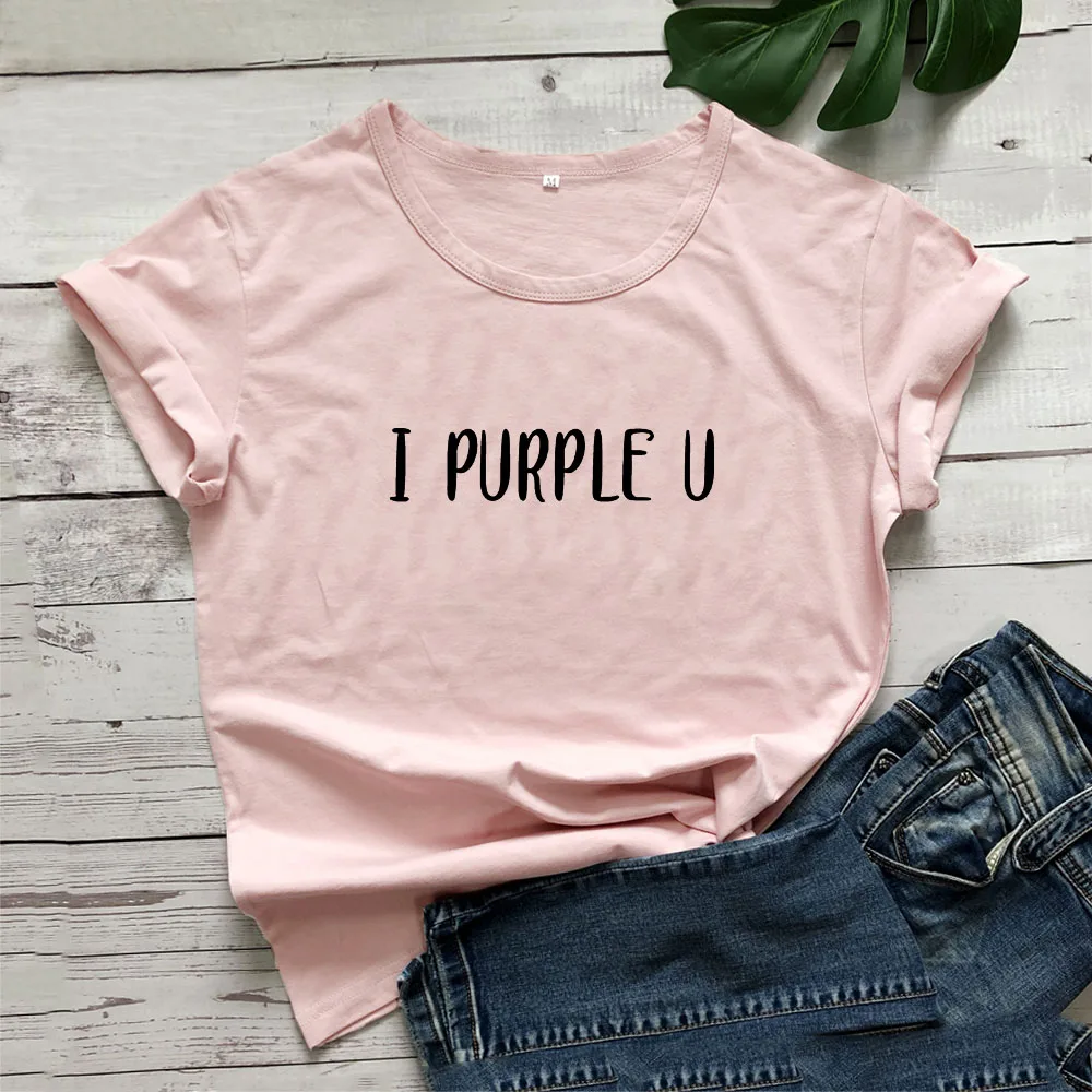Забавная женская футболка I Purple U с круглым вырезом и коротким рукавом, женская черная, белая футболка, Женский Топ, свободная повседневная футболка, Женский Топ