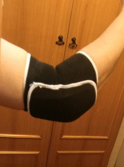 товар получила,использовать буду в защитных целях т.е у меня был брусит-врач откачал шишку,рекомендации:подлечить локать 2 н-и,потом носить налокотник.пока посылка шла носила свой старый теперь новенький.просто класс.на руку 52р.подходит идеально. спасибо продавцу!