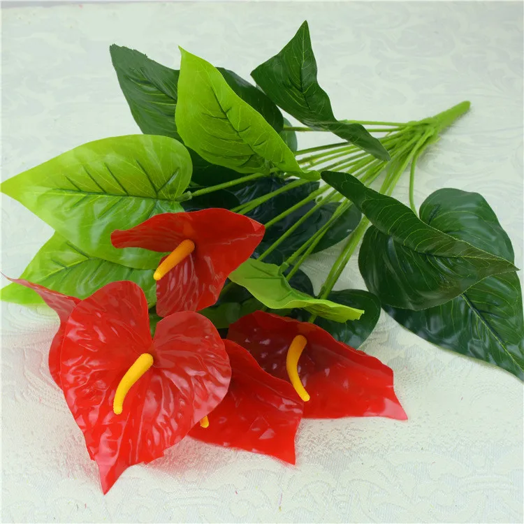 Искусственные растения, 18 вилокветки, антуриум, украшение, зеленый, листья в форме Панциря Черепахи, для сада, дома, искуственные цветы для декора, трава, бонсай
