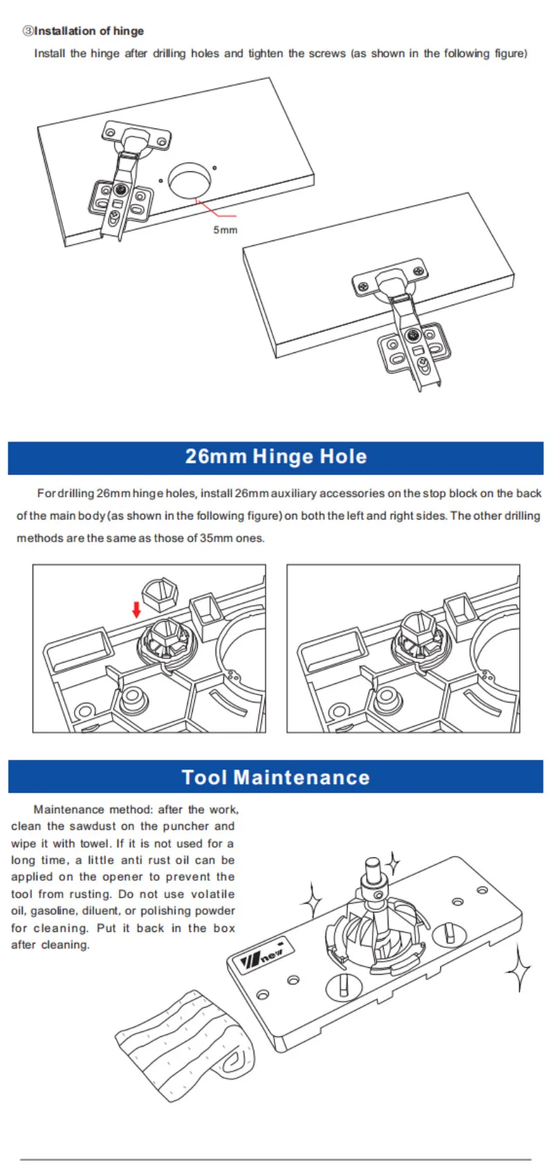 Скрытый шарнирный джиг подходит для петель отверстие распиловки до 35 мм.