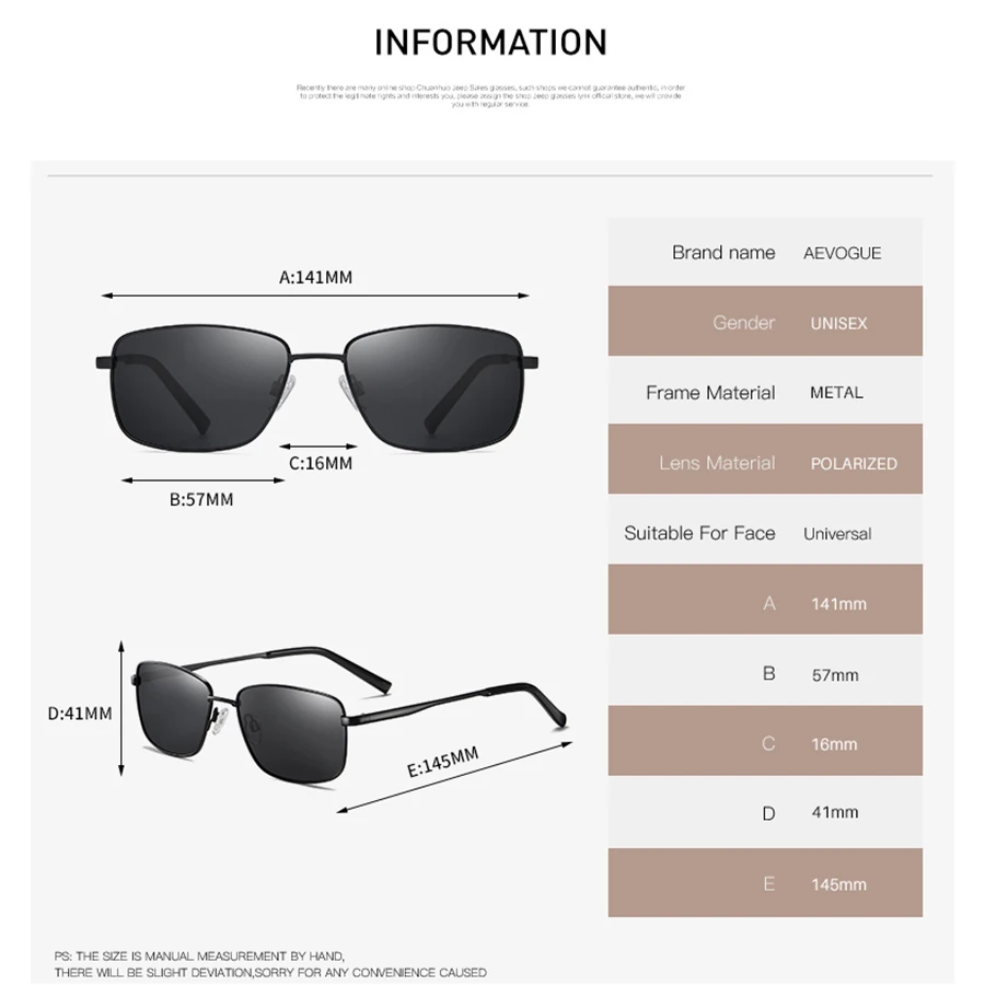 Солнцезащитные очки AEVOGUE AE0846 мужские, квадратные поляризационные, в металлической оправе, брендовые дизайнерские, в стиле ретро, UV400, 2020