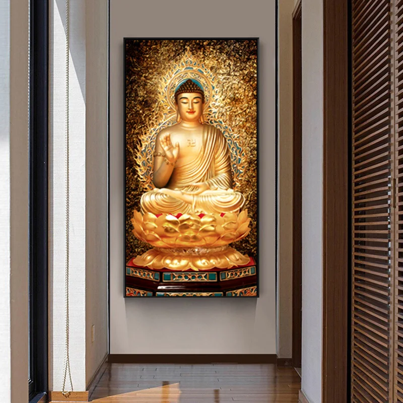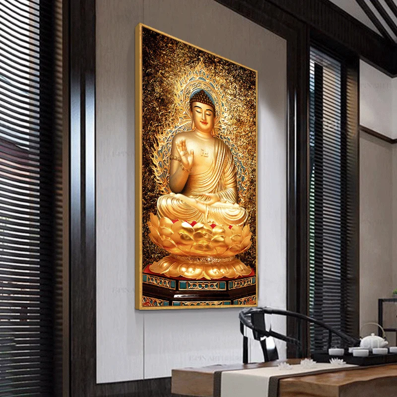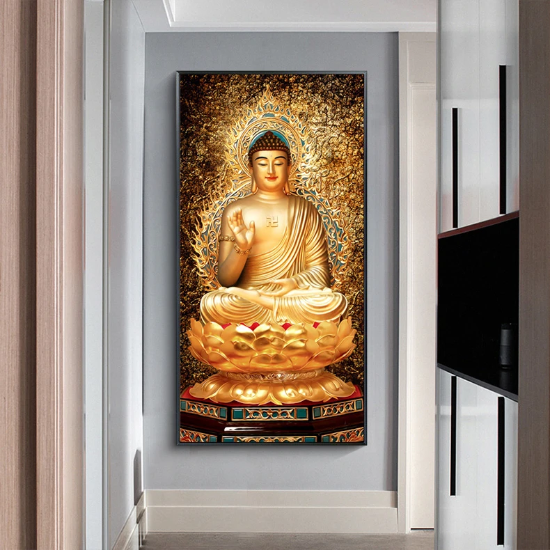 Золотая картина Будда на холсте, современное настенное искусство, к...