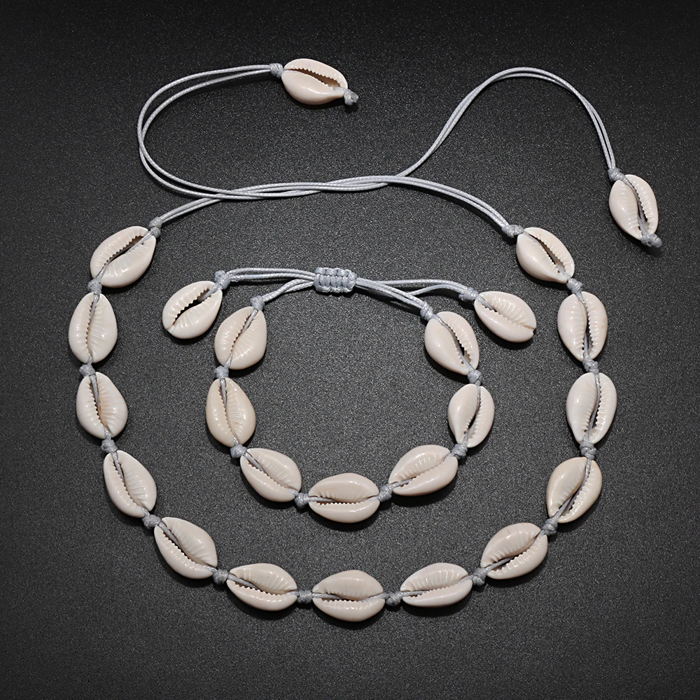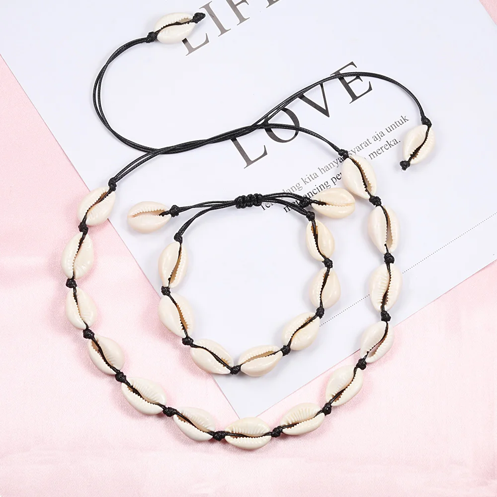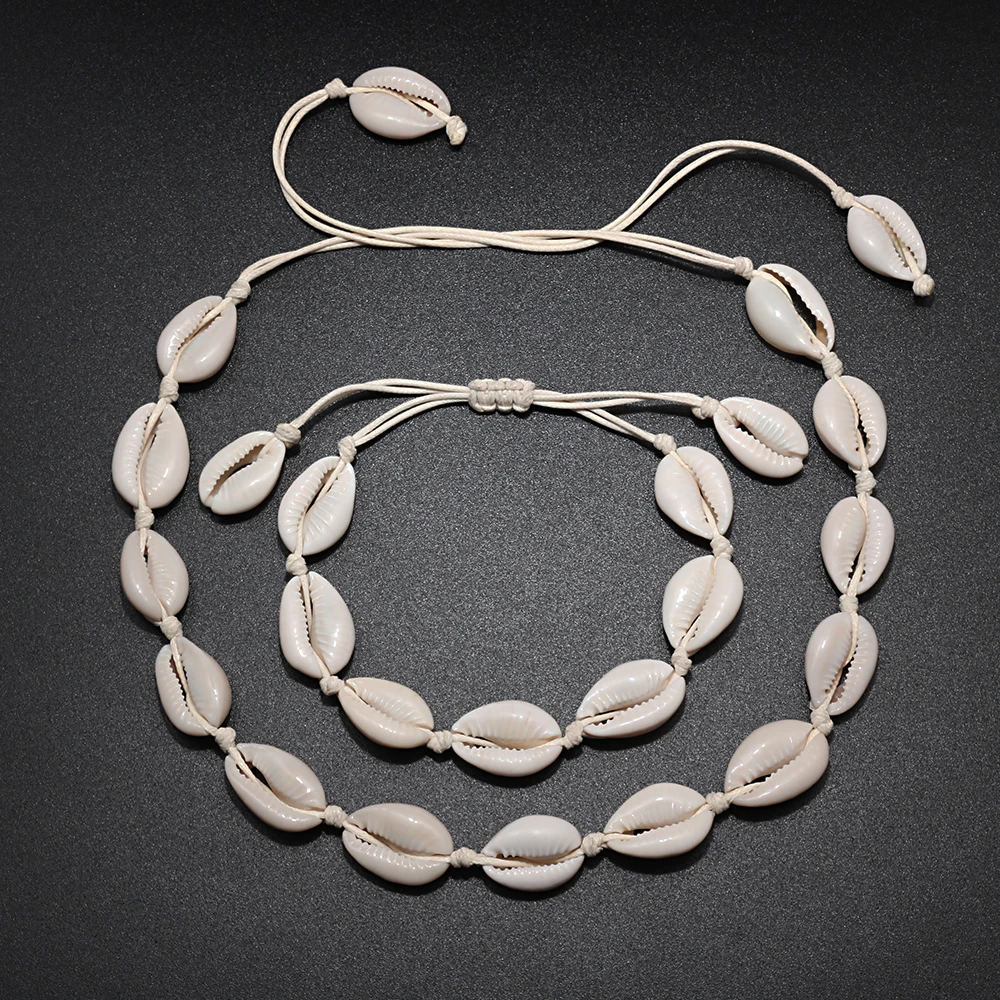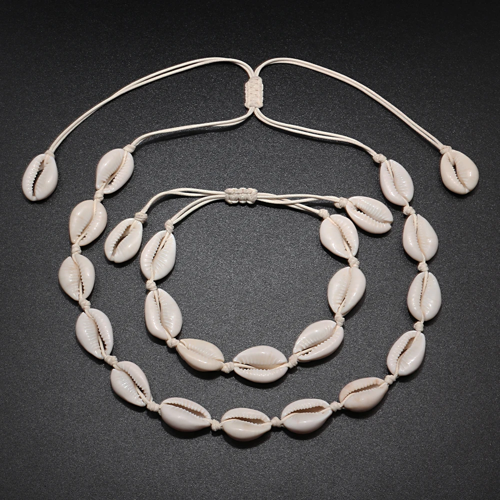 2 шт.компл. женские ожерелья в виде ракушки браслеты натуральные бусины раковины цепочка-чокер веревка богемные девушки ювелирные изделия лучший подарок ручной работы