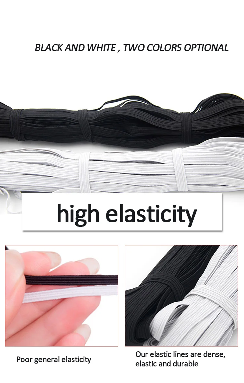 Эластичные ленты для шитья, черно-белая Полиэстеровая лента для аксессуаров одежды сделай сам, 10 м, 3, 4, 5, 6, 8, 10 мм