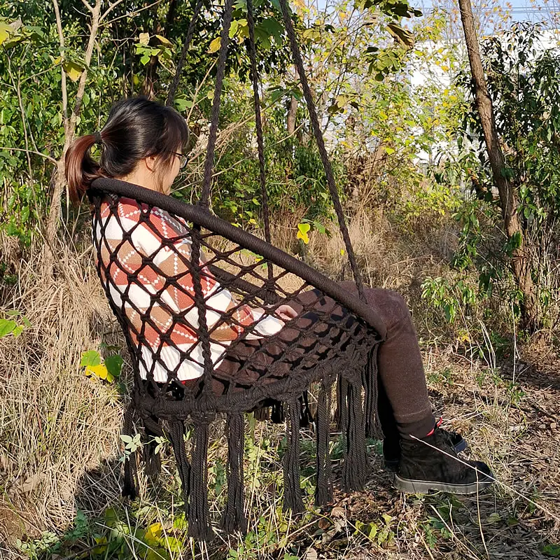 Особенности:* Макраме для гамака идеально подходит для вашего дома, патио или сада.* Красивое кресло обеспечивает вам спокойное, удобное и уютное место и является лучшим партнером для отдыха.* Когда вы готовы расслабиться и расслабиться, Повесьте его с любого крепкого навеса, чтобы создать свое расслабляющее пространство, насладиться природой, отдыхать под закатом, расслабляться у бассейна или отдыхать на палубе.* Отлично подходит для любого сезона, вы будете качать в стиле практически в любом месте.* Подвесное кресло-лучший подарок для ваших детей, семьи и друзей на Рождество.* Портативный и легко повесить* Прочный и стильный дизайн* Удобный и расслабляющийХарактеристики:Материал: хлопковая веревка, железный обручМаксимальный вес пользователя: 120 кг (260 фунтов)Малый диаметр цепи: 60 см/23,6"Большой Диаметр цепи: 80 см/31,5"Высота: 120 см/47,2"Посылка включает в себя:1 х Гамак стулОбратите внимание, что в комплект не входит подвесная цепочка, крючки или подушкаПримечание:Возможны отклонения в 1-3 см из-за ручного измерения. Перед размещением заказа убедитесь, что вы не возражаете.Цвет может отличаться от цвета на дисплее, пожалуйста, поймите.Нет стойки или другого оборудования. Без подушек или подушек.Двусторонний подвесной светильникСтиль качели (рекомендуется)-вы можете использовать его в качестве удобного качели, который позволяет вам двигаться вперед и назад. В этот чехол, вам понадобится две опорные точки в ваш потолок в помещении или какой-либо один крепкий ветви дерева в вашем дворе.Поворотный стиль-подвешивание вашего стула гамака Поворотный стиль позволяет вращаться на 360 градусов и плавно дрейфовать во время отдыха. Если вы предпочитаете этот подвесной стиль, вам понадобится только одна якорная точка. Этот метод подвешивания подвешивается из одной точки якоря цепью или веревкой.Теплые наконечникиРегулярно проверяйте веревку на обоих концах для предотвращения чрезмерного износа.Запрещено качать вперед и назад, чтобы избежать ненужных повреждений, вызванных быстрым шлифованием двух концов.Пожалуйста, обратите внимание на безопасность во время отдыха и развлечений.