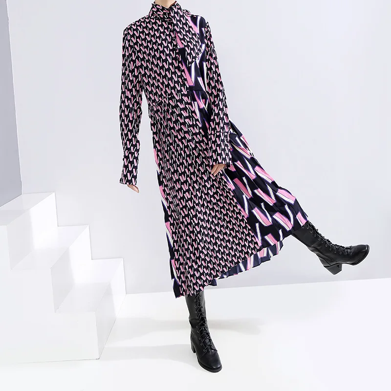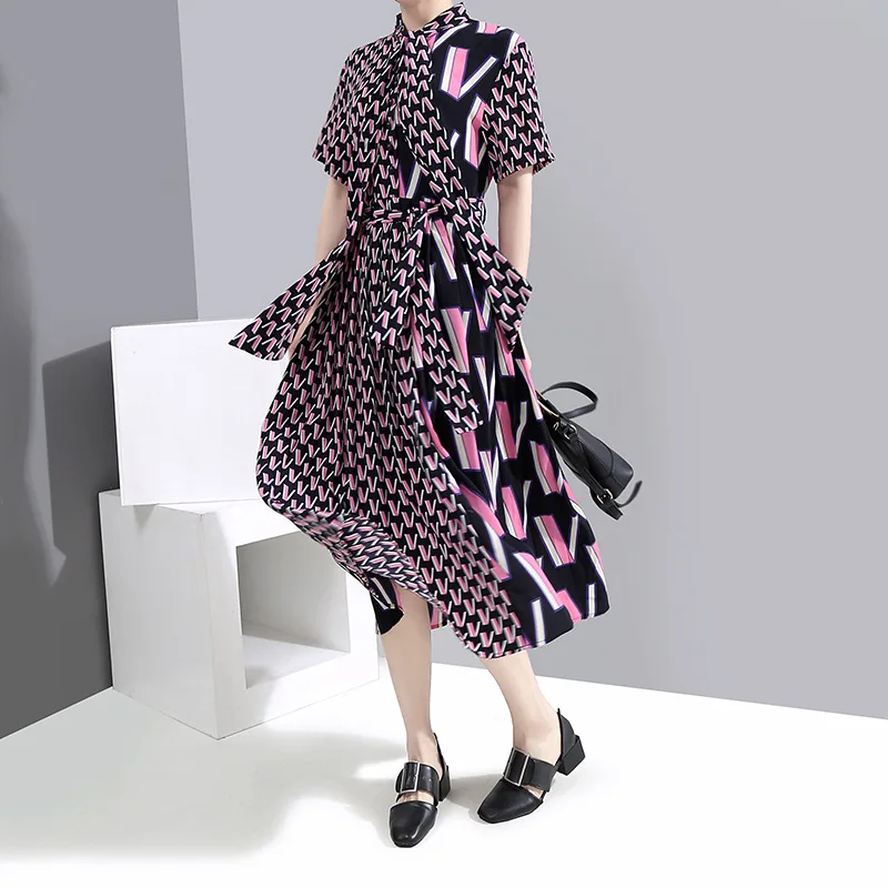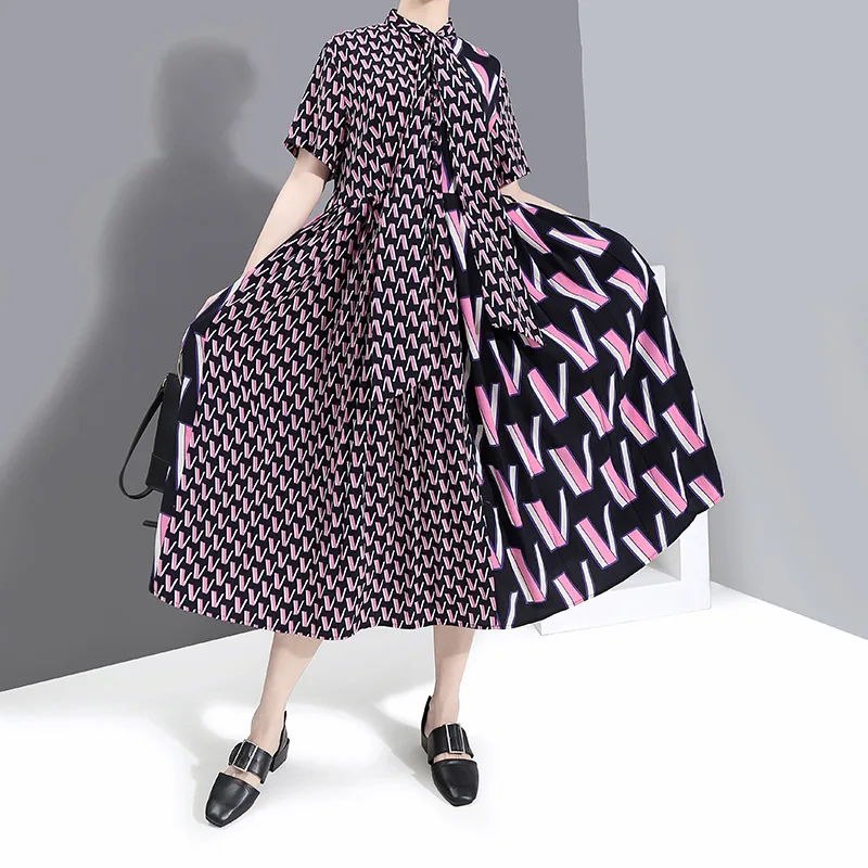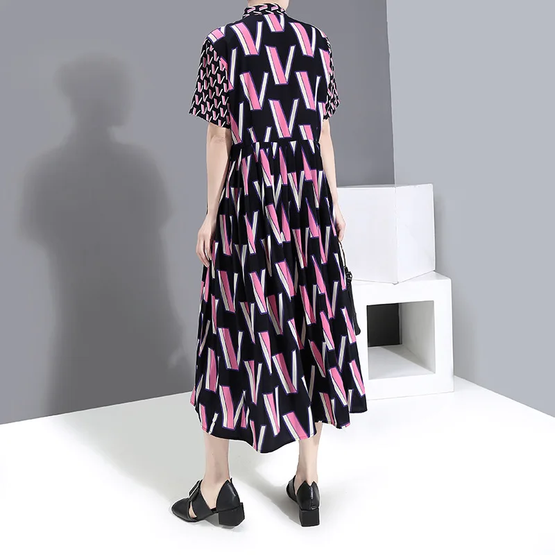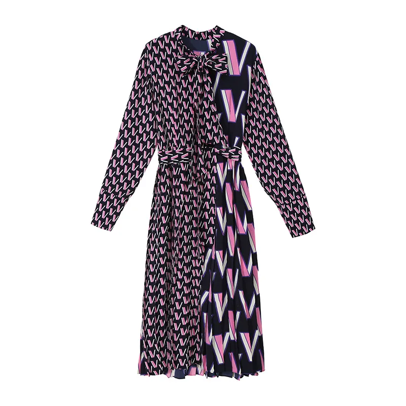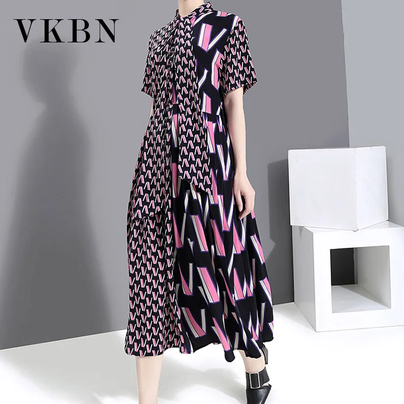 Женское офисное платье VKBN, элегантное платье с геометрическим принтом и отложным воротником, весна-лето 2021