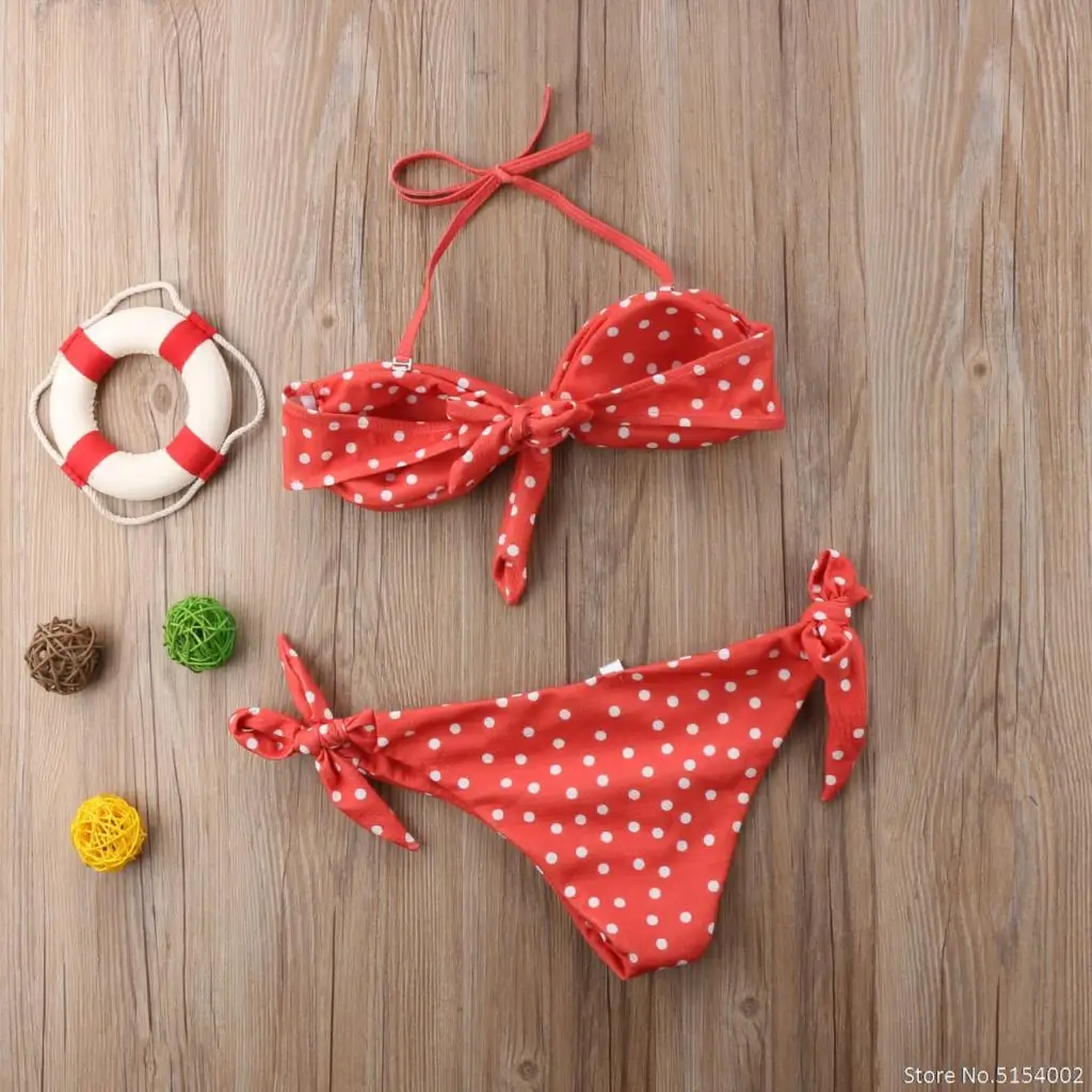 Популярный Сексуальный Женский бандо без бретелек с пуш-ап в горошек, комплект бикини на шнуровке, женский летний купальник, пляжная одежда