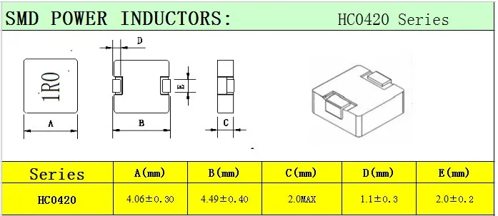 Номер модели0420 1UH 1.5UH 2.2uH 3.3uH 4.7uH 6.8UH 10uH 15UH 22uH 33uH 47uH