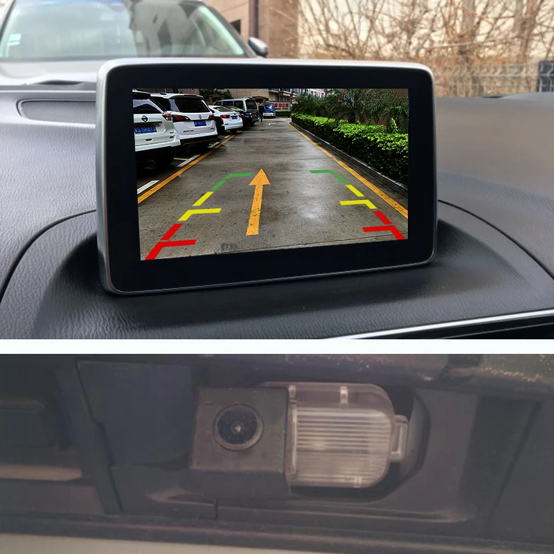 • Датчик изображения CCD 3089. Камера пиксель 720P.• Поддержка видеосистемы NTSC. Высокий класс водонепроницаемости: IP68.• Высокая четкость и широкий угол обзора 170 градусов. Как объектив «рыбий глаз».• Ночное видение с низким уровнем освещенности, видимое расстояние 6 м для ночной съемки.. Со справочными линиями парковки | RCA и оригинальный разъем. Камера заднего вида (6 в) Подключается и работает вместе с оригинальным автомобильным экраном• Для Mazda 3 седан (BM) 2014 ~ 2018Для Mazda Axela седан (BM) 2016 ~ 2018