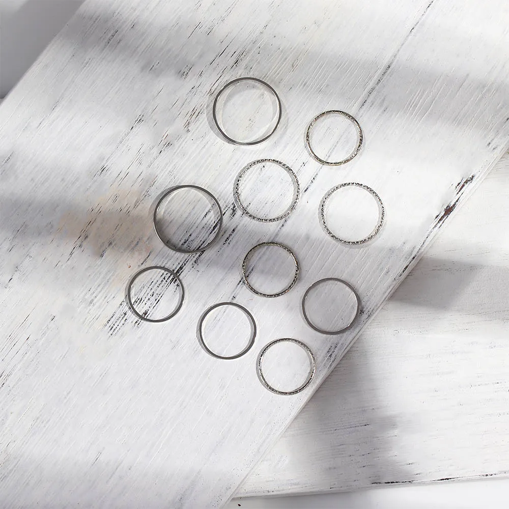 10 колечек по 2 одинаковых, как на картинке. Доставка около 3 недель.