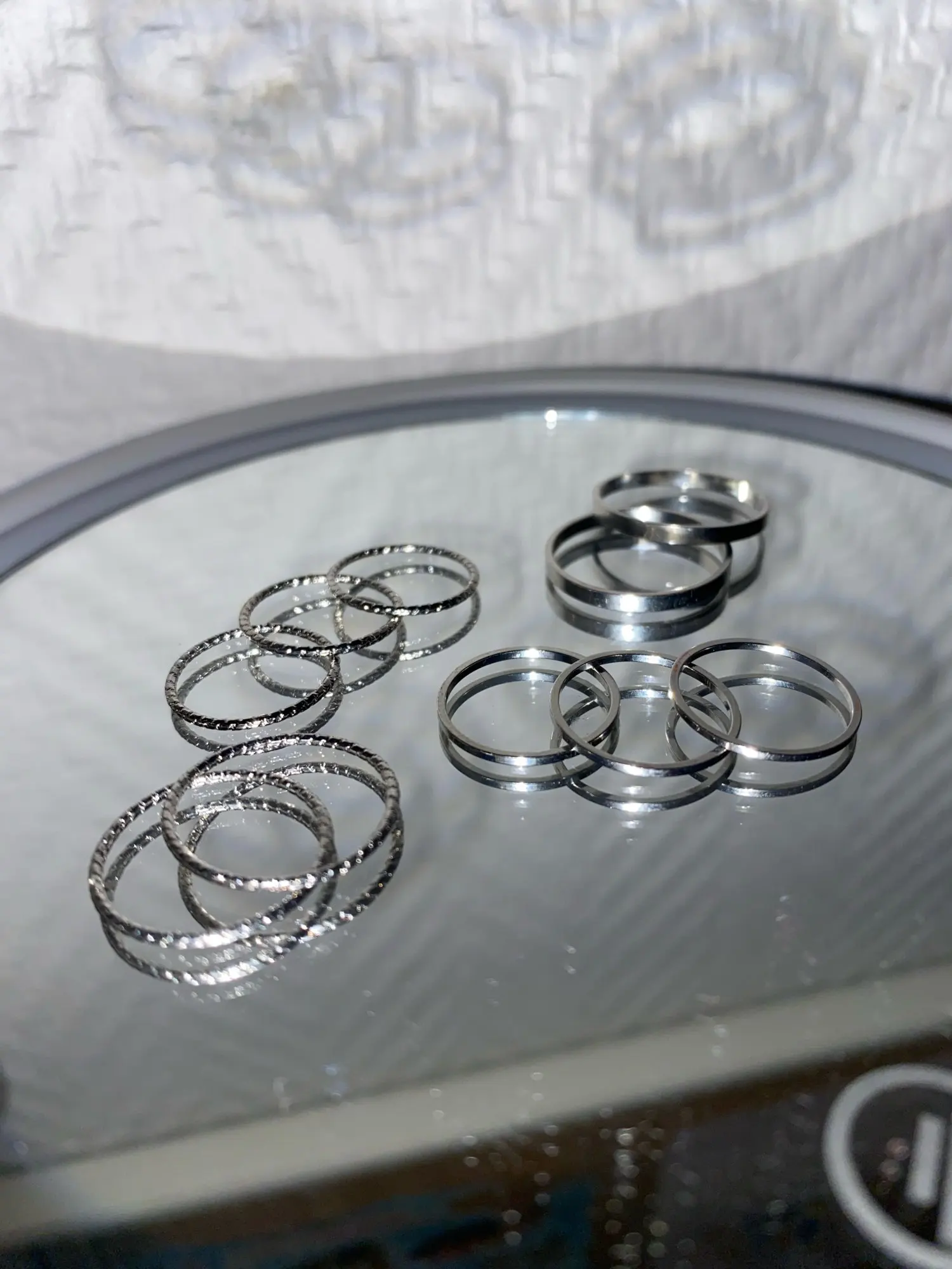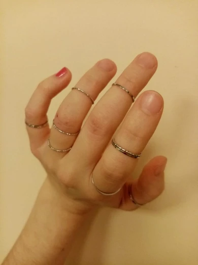 나 손가락 얇은 편임 배송도 생각 이상으로 엄청 빨리와서 너무 행복하고 맘에 쏙 든다 4개 빼고는 다 딱 맞았음 너무 만족함 솔직히 다 맞아야한다는거 생각 안 하는게 당연한거임. My fingers are thin. I'm so happy that the delivery came faster than I thought. Two rings were big, but the rest fit perfectly. I'm so satisfied. I think It's wrong to think that everything should fit perfectly.