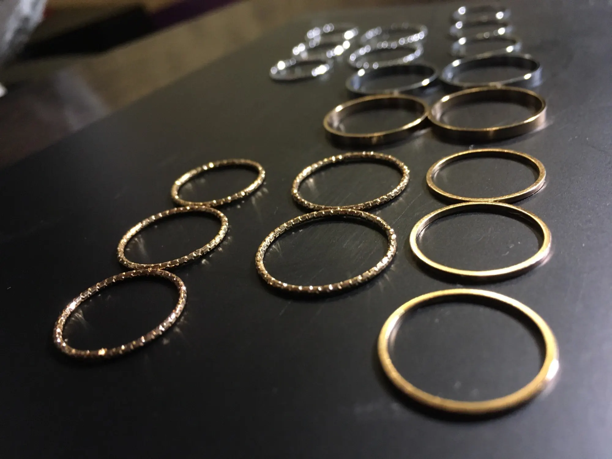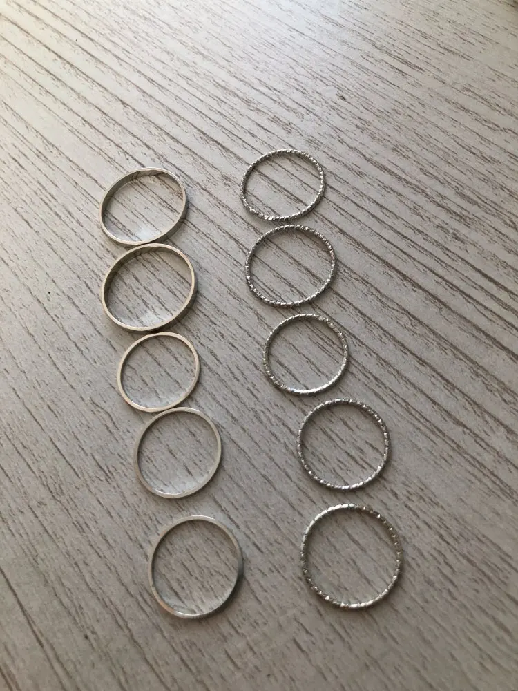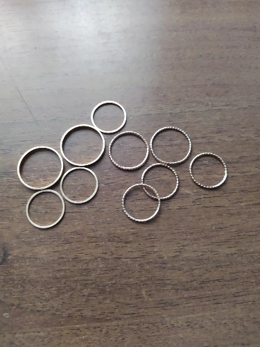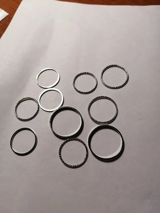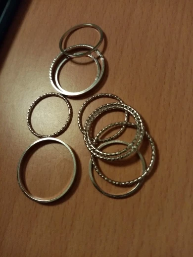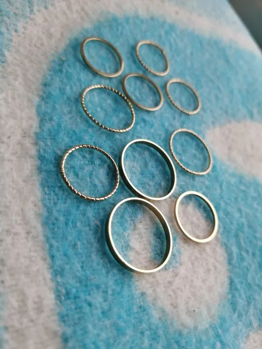 Хорошие колечки, очень милые. Не все подошли, потому что размеры маленькие, смогу носить до конца только 4 штуки, остальные просто чтобы побаловаться