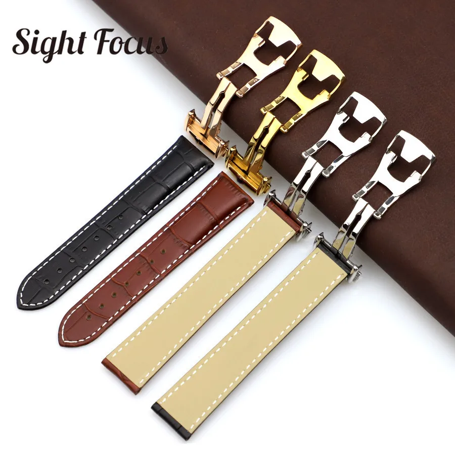 Ремешок из натуральной телячьей кожи для часов, браслет для Omega Seamaster Speedmaster DeVille, браслет с раздвижной застежкой, 19 мм 20 мм 21 мм