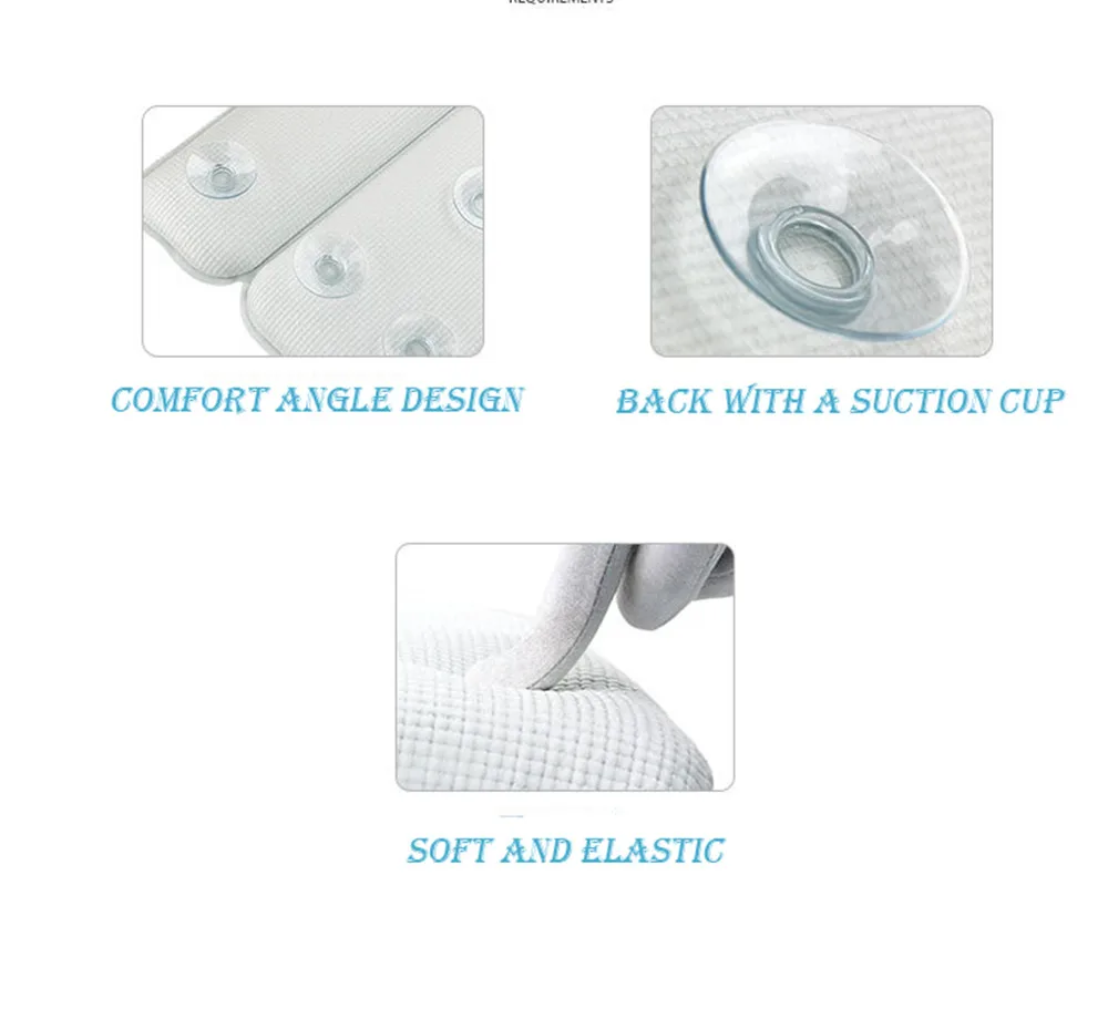 Подушка для ванны спа Нескользящие мягкие водонепроницаемые подушки для ванны на подголовнике с присосками, легко моющиеся аксессуары для ванной комнаты