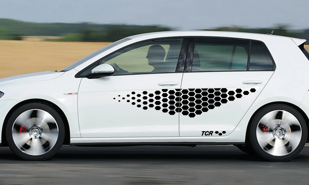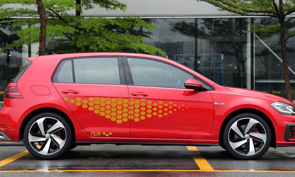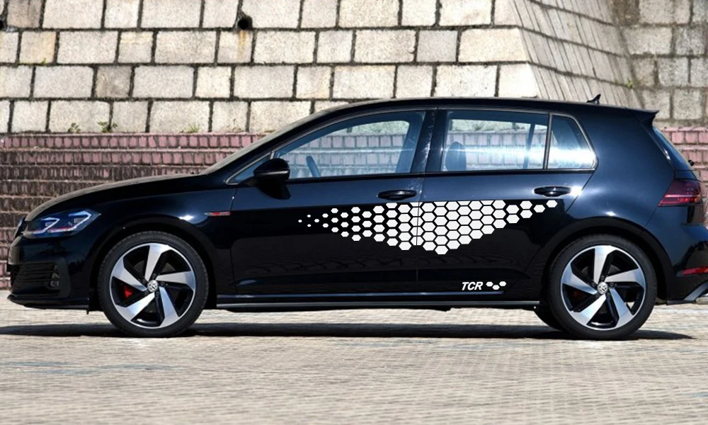 2 шт., автомобильная наклейка на дверь, боковая юбка для Volkswagen VW Golf 4 5 6 7 Polo, автомобильная виниловая пленка, гоночная наклейка, автомобильные аксессуары