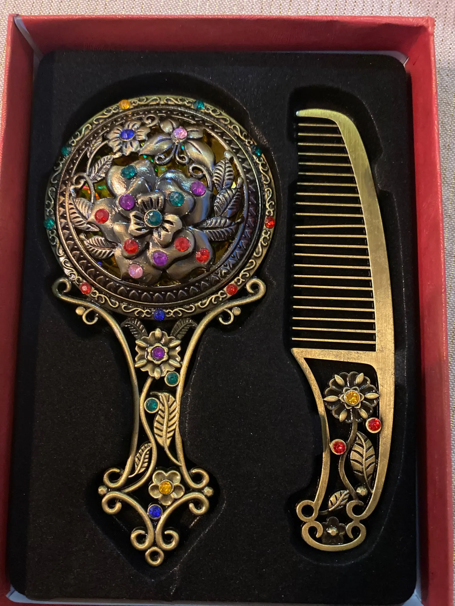 2 шт.компл. 2020 Ретро бронзовые карманные зеркала полое компактное зеркало для макияжа расческа набор с подарочной коробкой случайный цвет