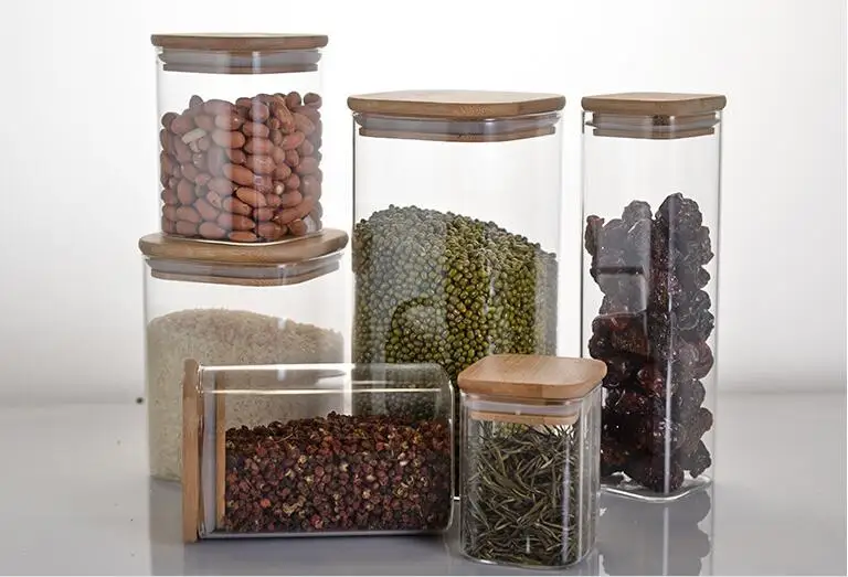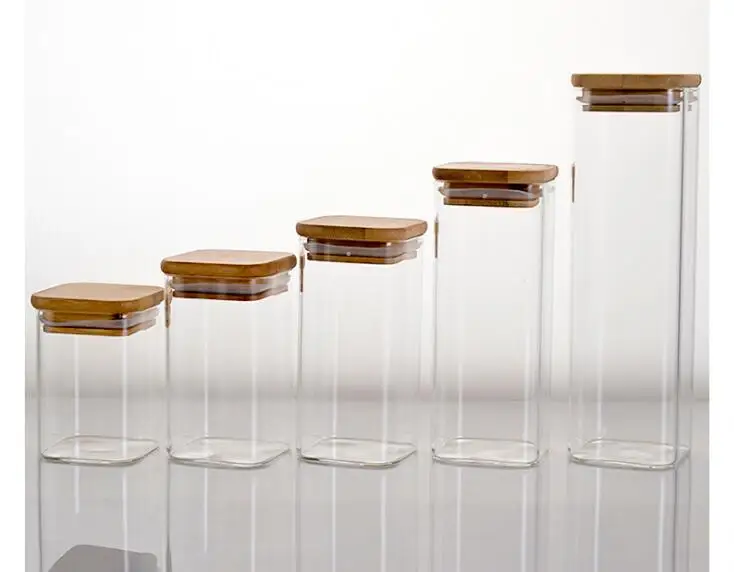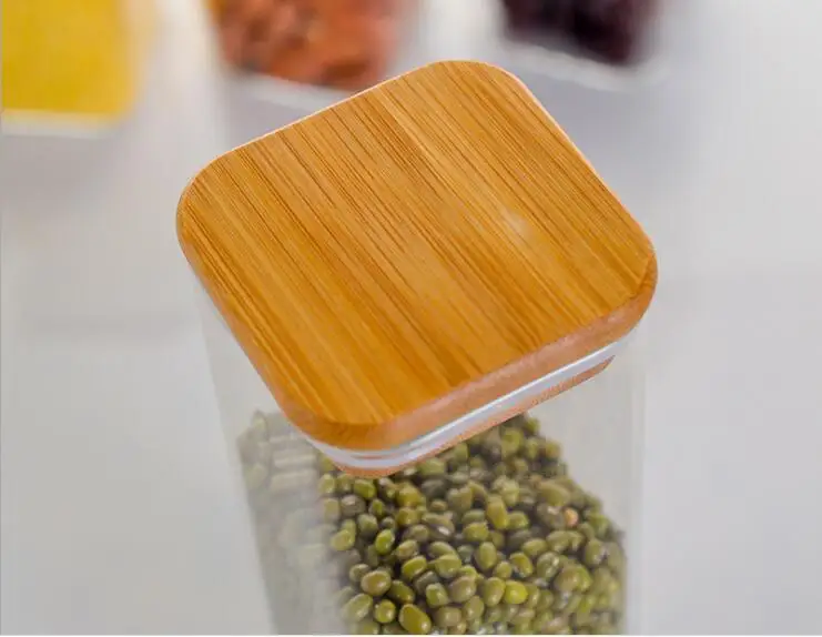 Контейнер для пищевых продуктов JO 1031, квадратная бамбуковая крышка, герметичный стеклянный бак с высоким содержанием боросиликатных пищевых продуктов, кухонный бак для хранения зерна, 1 шт.