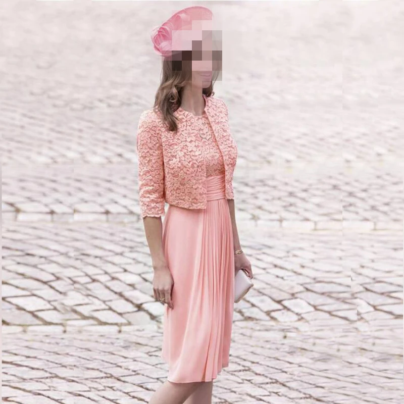 Короткие платья до колен для матери невесты с пиджаком, кружевные шифоновые женские платья для праздника, свадьбы, коктейвечерние
