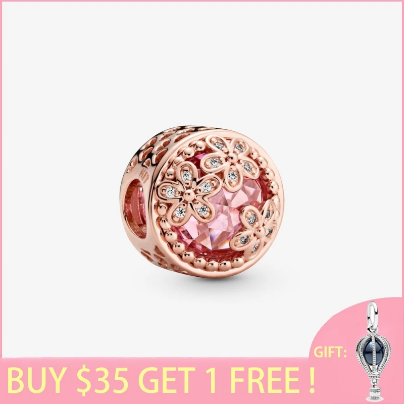 Бусины из серебра 2021 пробы с розовыми маргаритками