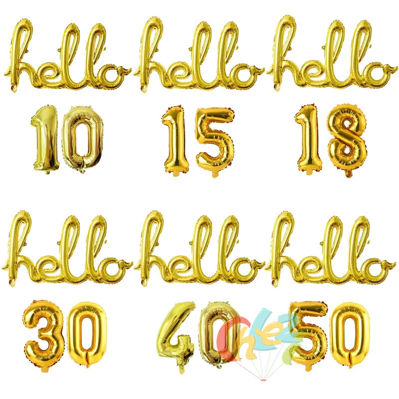 Фольгированные шары в виде цифр, 1 комплект, 16 дюймов, буквы hello 30 40 50, розовое золото, серебро, для украшения дня рождения, воздушные шары