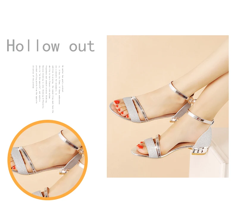 Женские сандалии с пряжками 2020 года Летние блестящие модные туфли на низком каблуке с открытым носком Женские бретельки Женские повседневные туфли для вечеринок