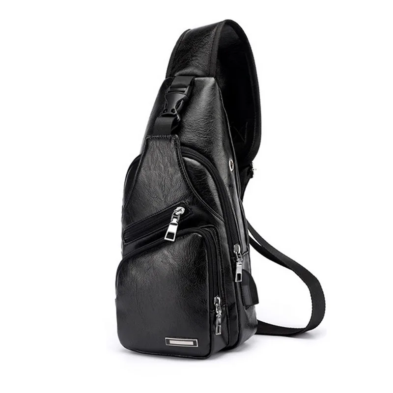 Нагрудная из искусственной кожи для мужчин, сумка на плечо с USB-за...