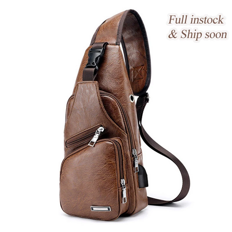Мужские дорожные нагрудные сумки поясные сумки, мужская кожаная сумка через плечо с USB-зарядкой и разъемом для наушников