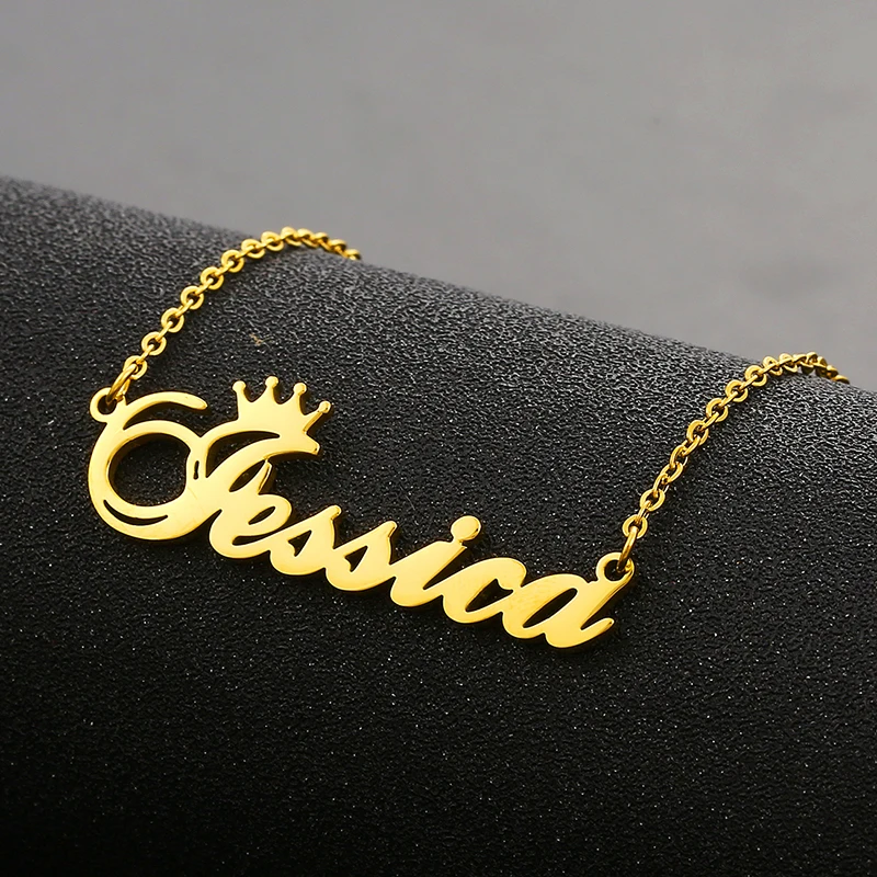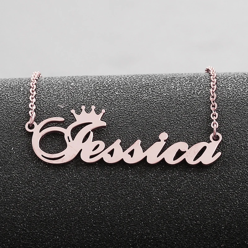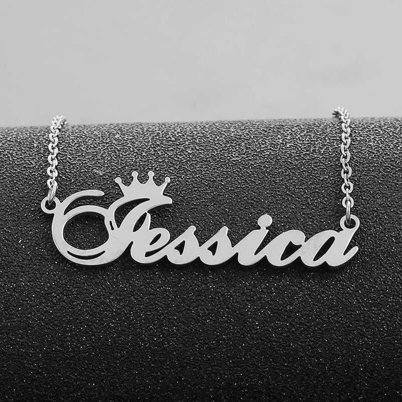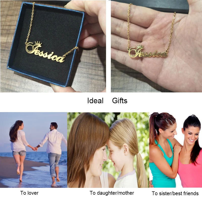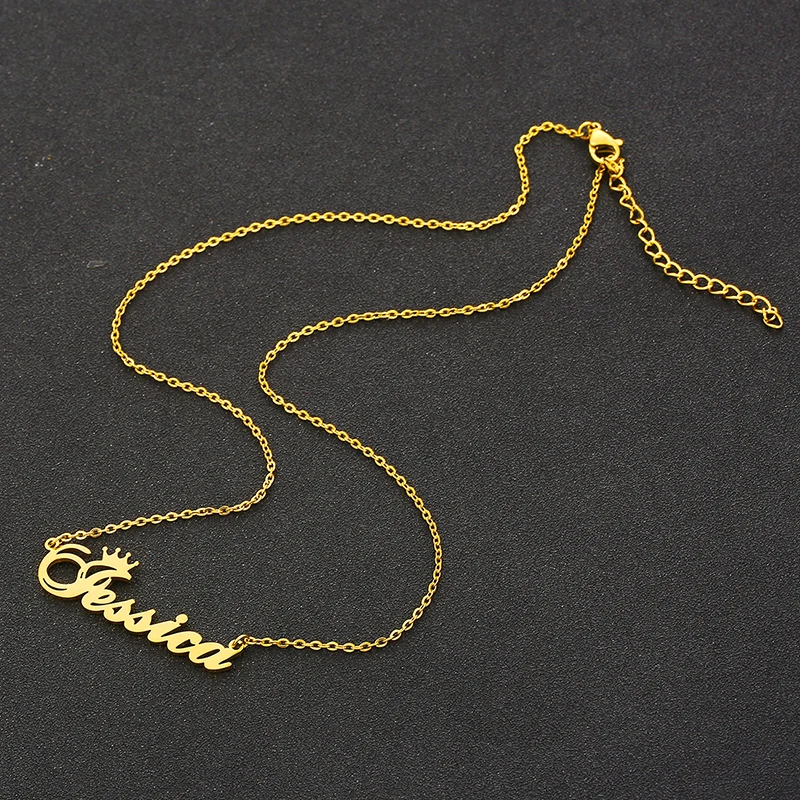 Ожерелье с именем короны для женщин, персонализированная цепь с табличкой из нержавеющей стали, Индивидуальные ювелирные изделия, подарок для матери и дочери