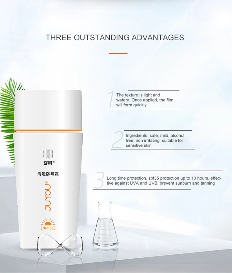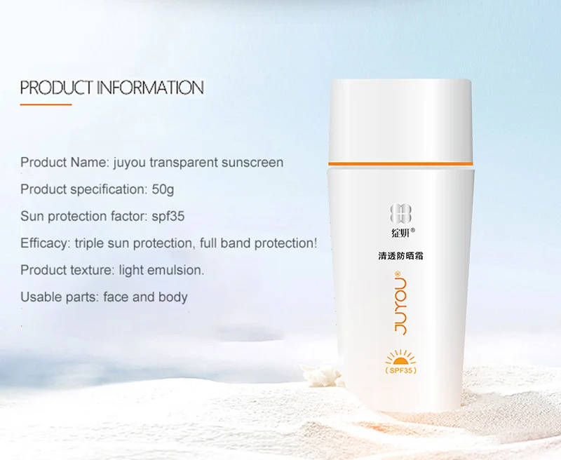 Солнцезащитный крем для лица JUYOU(Zhanyan), защита от УФ-лучей, SPF35, освежающее молоко, нежирная чувствительная кожа, 50 г