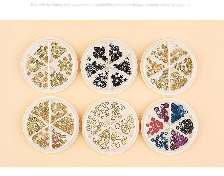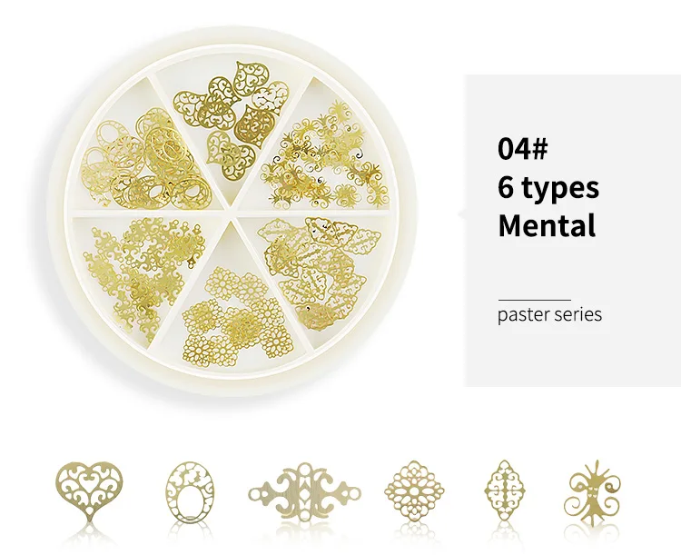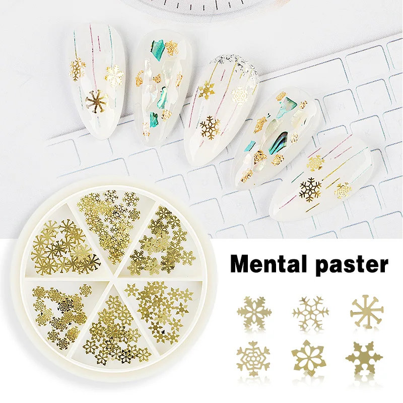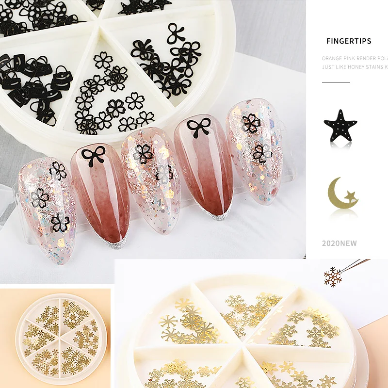Золотые ажурные украшения для дизайна ногтей, металлические заклепки 3D в разных стилях, снежинка, звезда, луна, блестящий кулон, аксессуары для маникюра