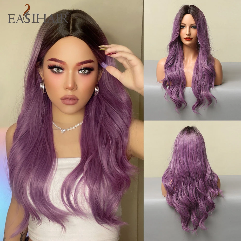 Парики Синтетические длинные с эффектом омбре, для чернокожих женщин, из термостойкого волокна, средней длины, для косплея, натуральные волосы