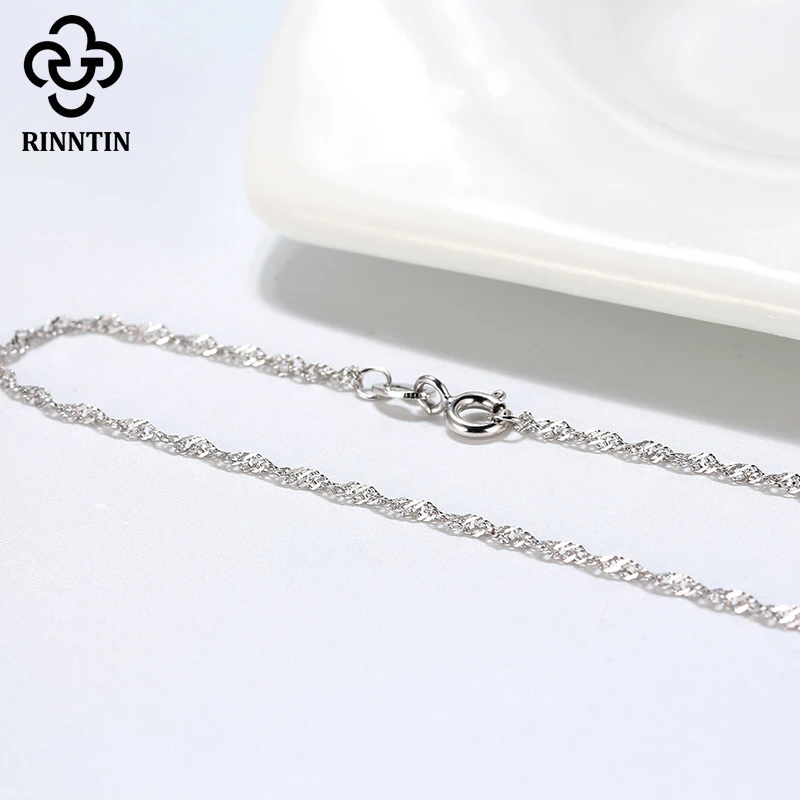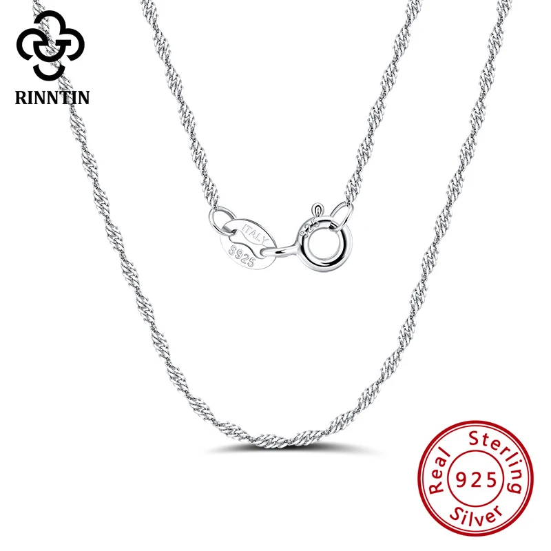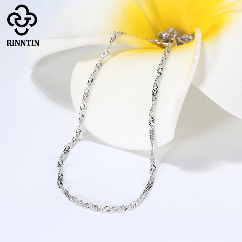 Rinntin Аутентичные S925 серебро 2,3 мм Сингапур на веревочной цепочке с алмазной огранкой местами тонкое, а местами-толстое ожерелье для женщин мужчин 40 см/45 см/50 см SC02
