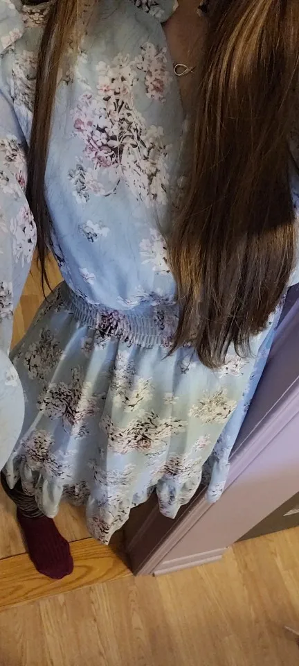 Плать оказалось короче чем ожидала, на рост 170, существенно выше колен, а так все как на фото, ткань приятная, нитки не торчат, в целом милое платье
