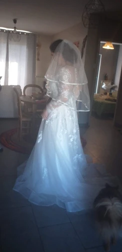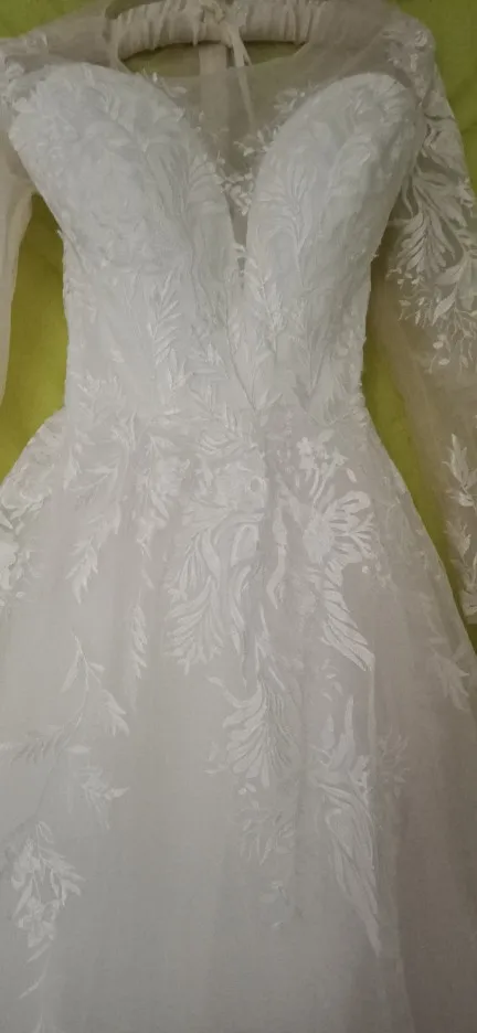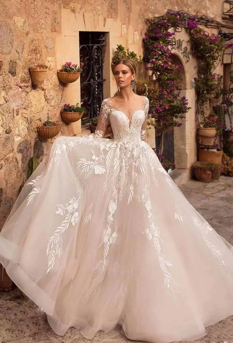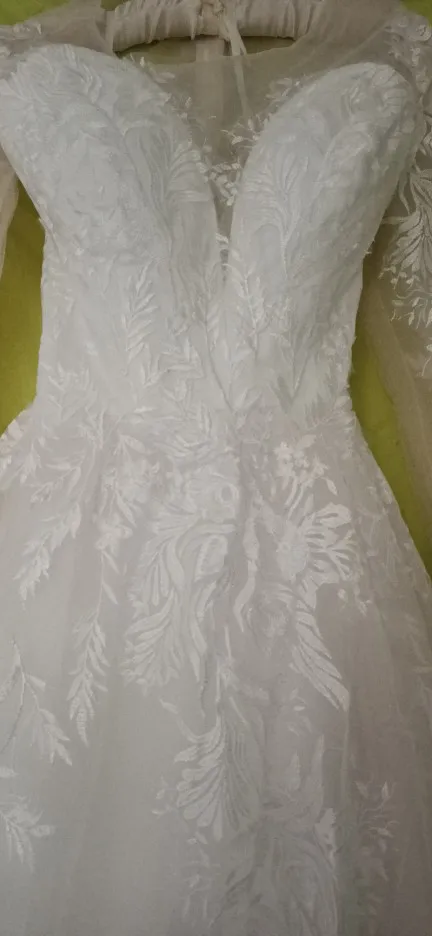 Роскошное кружевное свадебное платье с аппликацией и длинным рукаво...