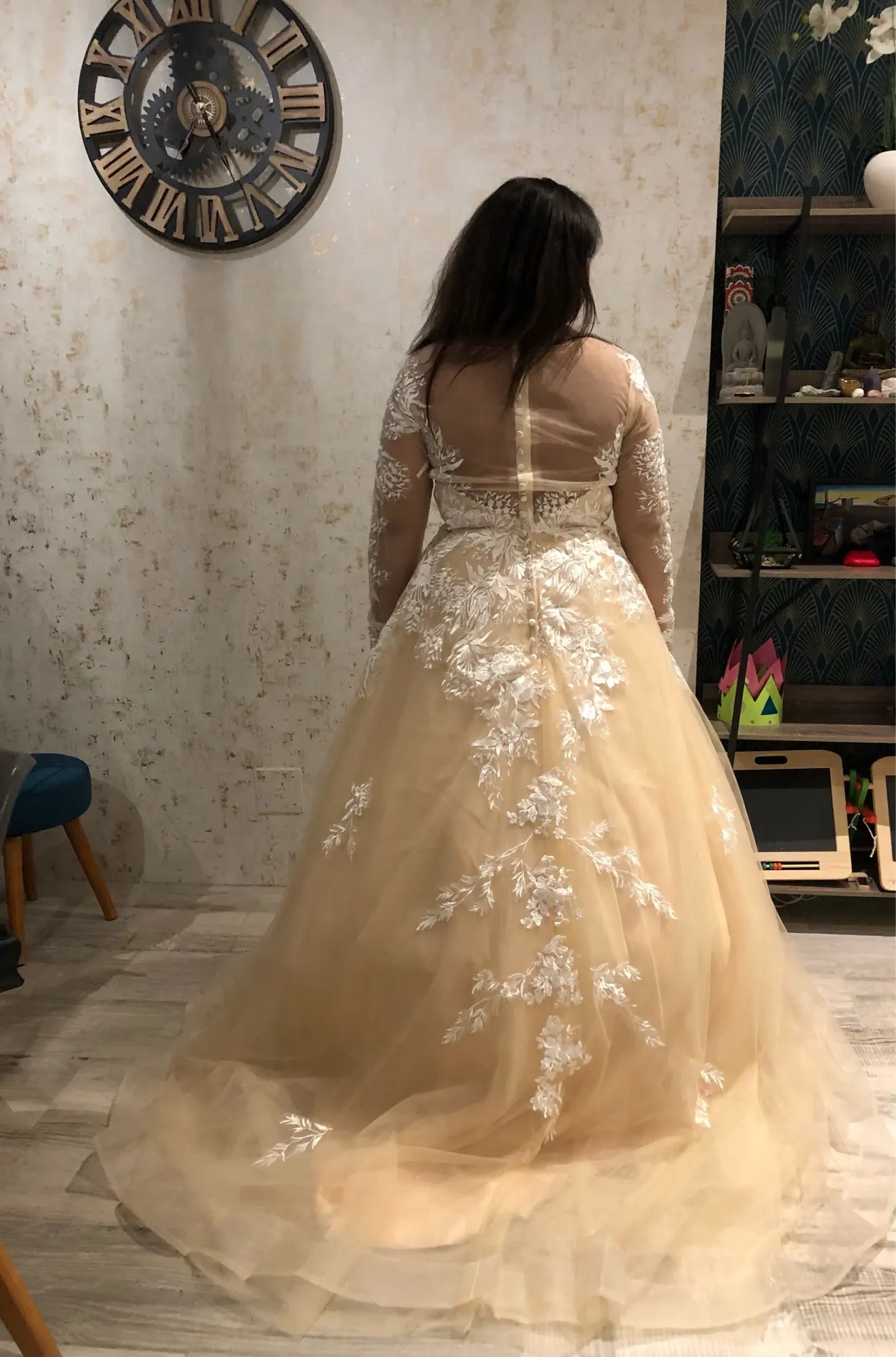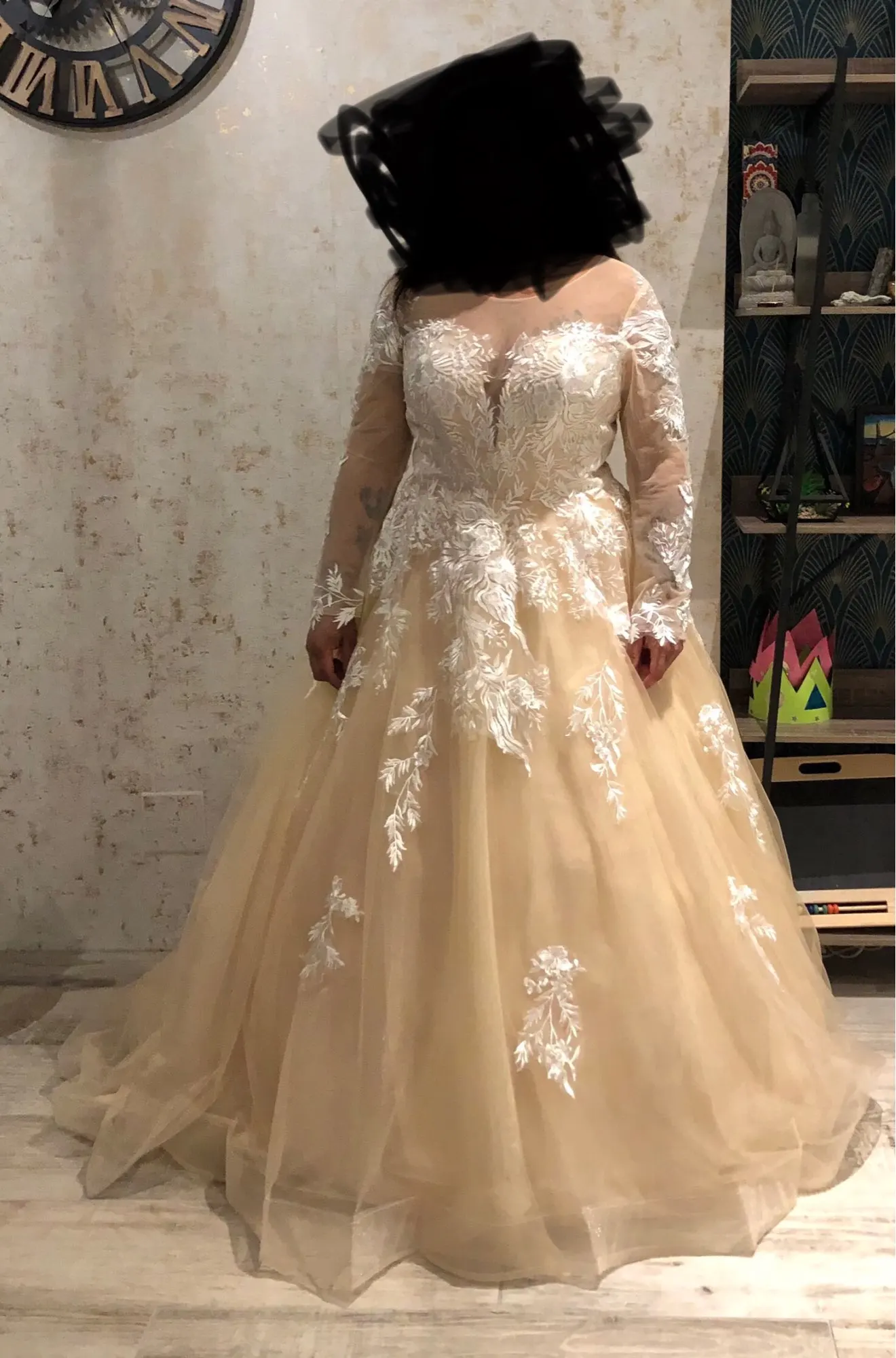 Роскошное свадебное платье цвета шампанского с юбкой-годе со съемны...