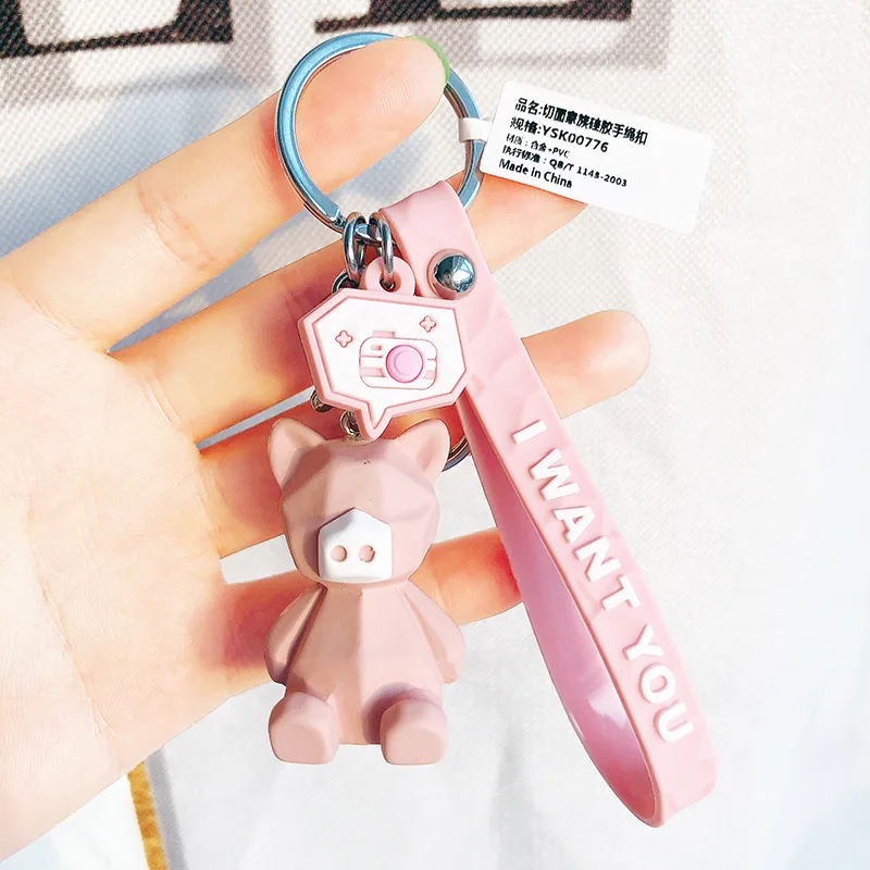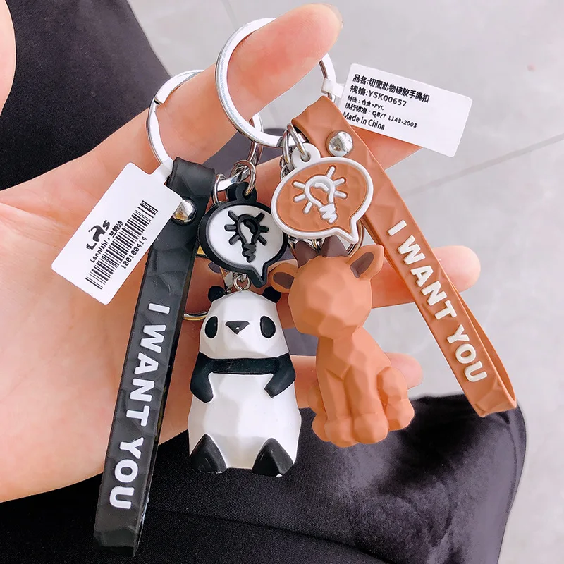 Модный милый брелок для ключей с динозавром, автомобильный брелок для ключей, женский брелок с мультяшным животным из ПВХ, пандой, ремешок, аксессуары для сумок, брелок