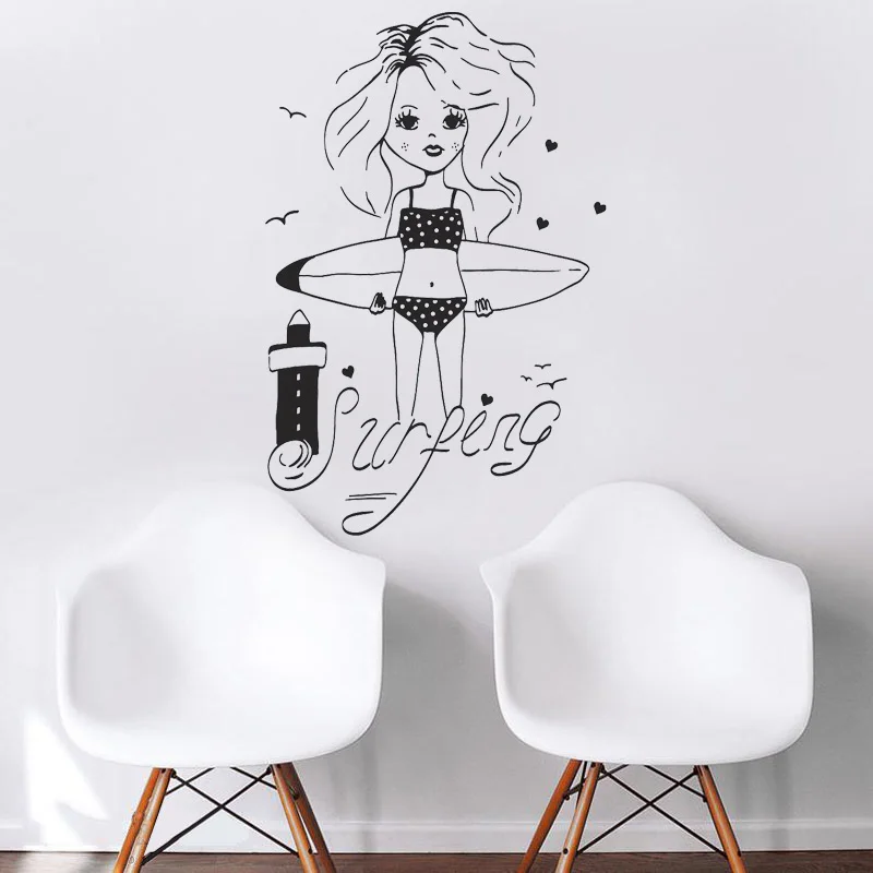 Виниловая наклейка на стену для серфинга в пляжном стиле