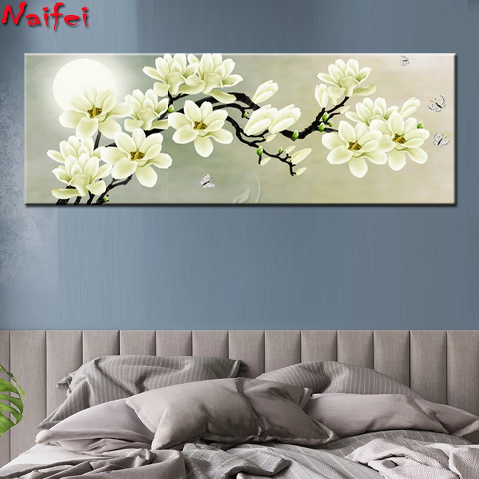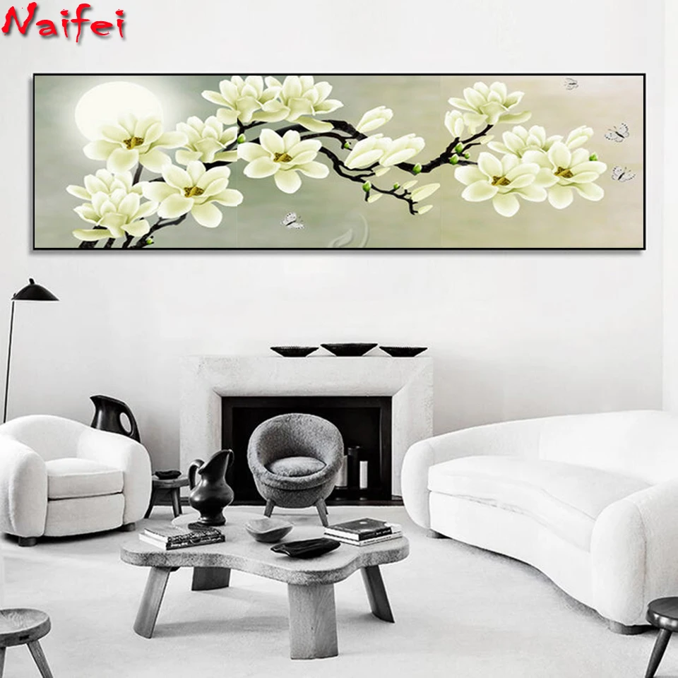 Большая 5D Diy квадратная/круглая Алмазная картина красивый цветок Алмазная вышивка-мозаика стразами вышивка крестиком белая Магнолия