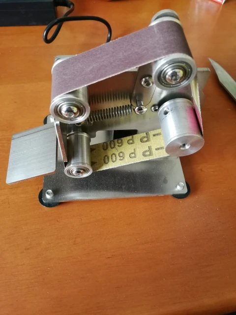 Очень хорошая шлифовальная машина для заточки ножей с супер быстрой доставкой! У большинства ремней отсутствует маркировка зернистости, и мне придется подумать о держателе ножа для точного угла. Но, определенно рекомендуется хороший инструмент!