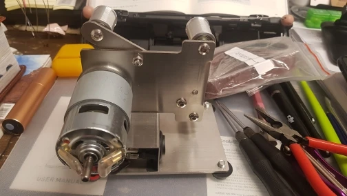 заказал вариант с лентами 25мм без блока питания с доставкой из рф. через 4 дня получил. работает нормально, немного шумно. при питании 20 вольт, потребляет 3.7 ампера. в комплекте 10 лент разной зернистости от 60 до 1000, и два г-образных торцевых шестигранника. в целом доволен, за 2777руб считаю нормальная вещь. рекомендую.