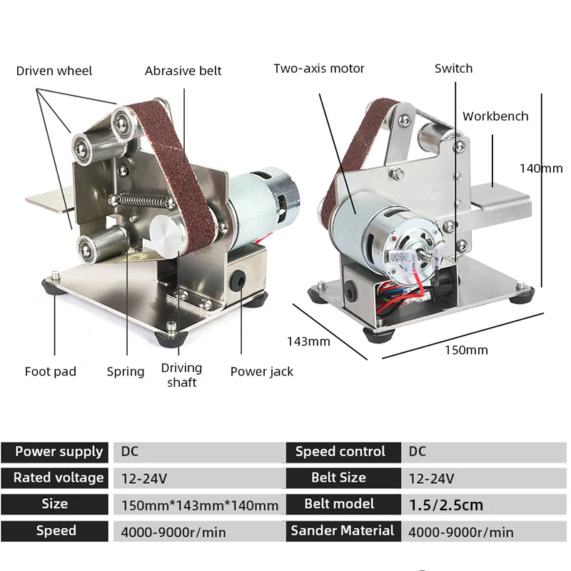 Мини-Электрический ленточный станок DIY, шлифовальный станок, шлифовальный станок, Портативный станок для заточки краев ленточная шлифовальная машина по металлу, ленточный шлифовальный станок