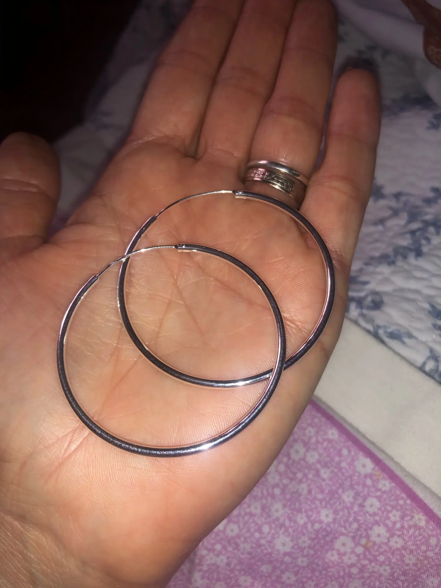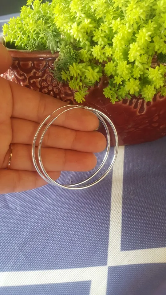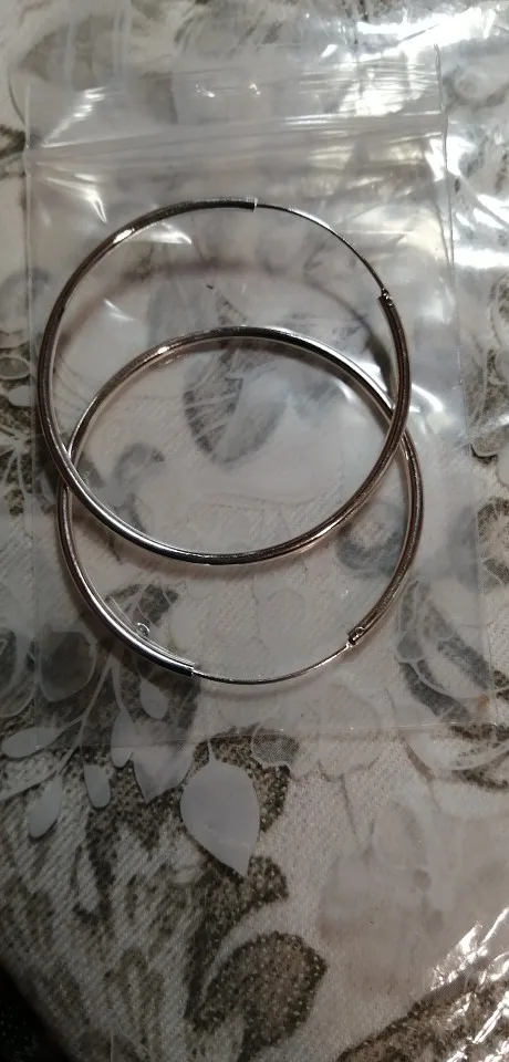 Очень красивые серьги-кольца, размер отличный. На мой взгляд, по ощущениям - это настоящее серебро, стоит проба. Для сравнения: покупала такие же, (но дороже) на сайте асос: их "серебро" поржавело и развалилось через 2 недели. А эти серьги выглядят очень добротно. Буду заказывать ещё, отличный продавец и быстрая доставка! Рекомендую.