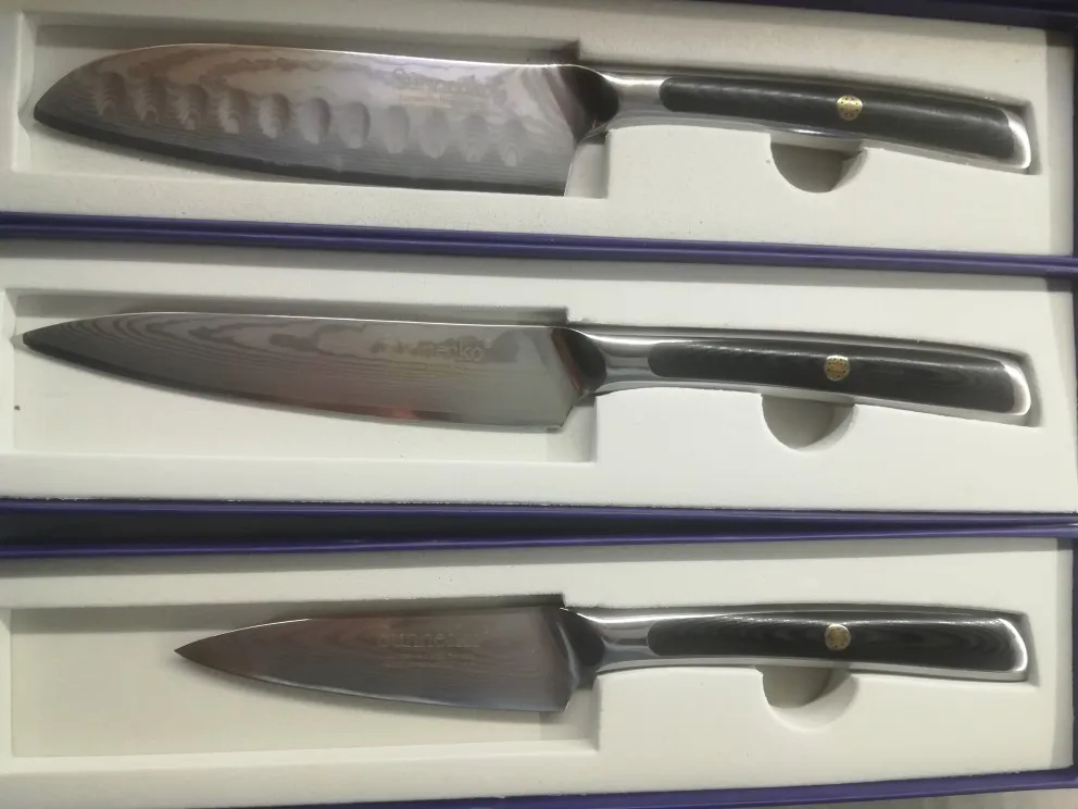 Заказала четыре ножа, заказ пришел супербыстро в СДЕК. Упаковано хорошо. Брала универсал, сантокку, овощной (5 дюймов) и шеф (8 дюймов). Ножи премиум качества, режут всё, как в рекламе. Мясо, овощи, хлеб - идеально в нарезке. Хват удобный. Легко режут бумагу, очень острые. У шефа тяжелая ручка, не держится на магните, храню отдельно. Покупкой крайне довольна. Заказала на дачу еще три, другой серии. Недостатки: пальцев с каждым днем всё меньше и меньше)))