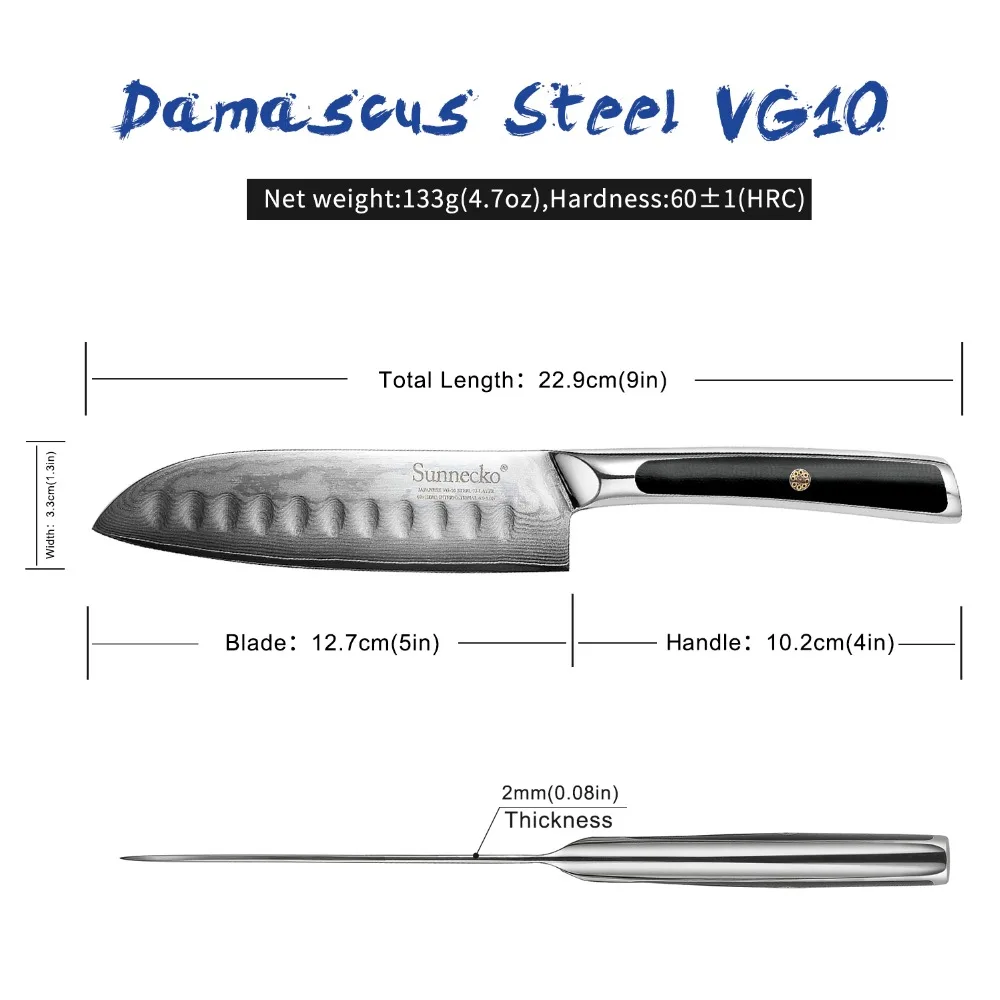 SUNNECKO 5 дюймов нож Santoku дамасский японский VG10 сердечник стальное лезвие кухонные ножи G10 Ручка острый нож для мяса шеф-повара ножи