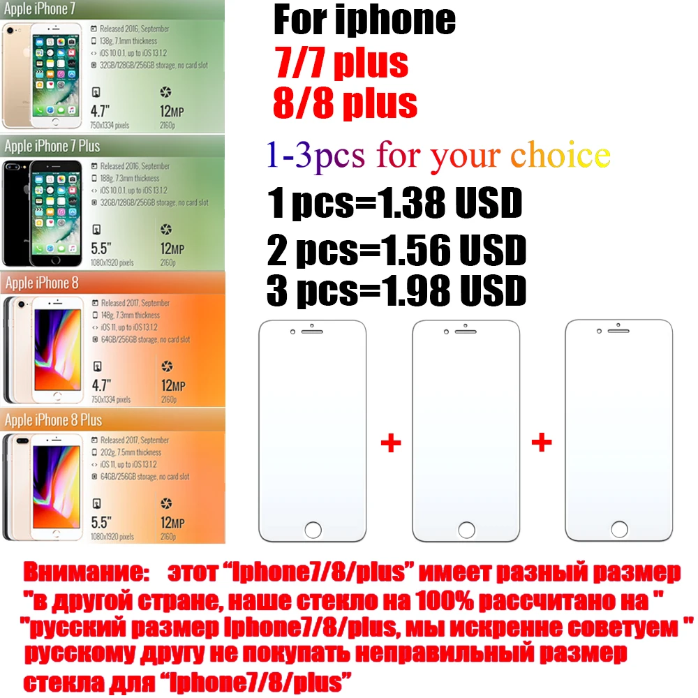 1, 2, 3 шт., Защитное стекло для Iphone 7, 8 Plus, защитная пленка для экрана 7plus, 8 plus, закаленное стекло для I7, I8, Iphone7plus I, пленка для телефона