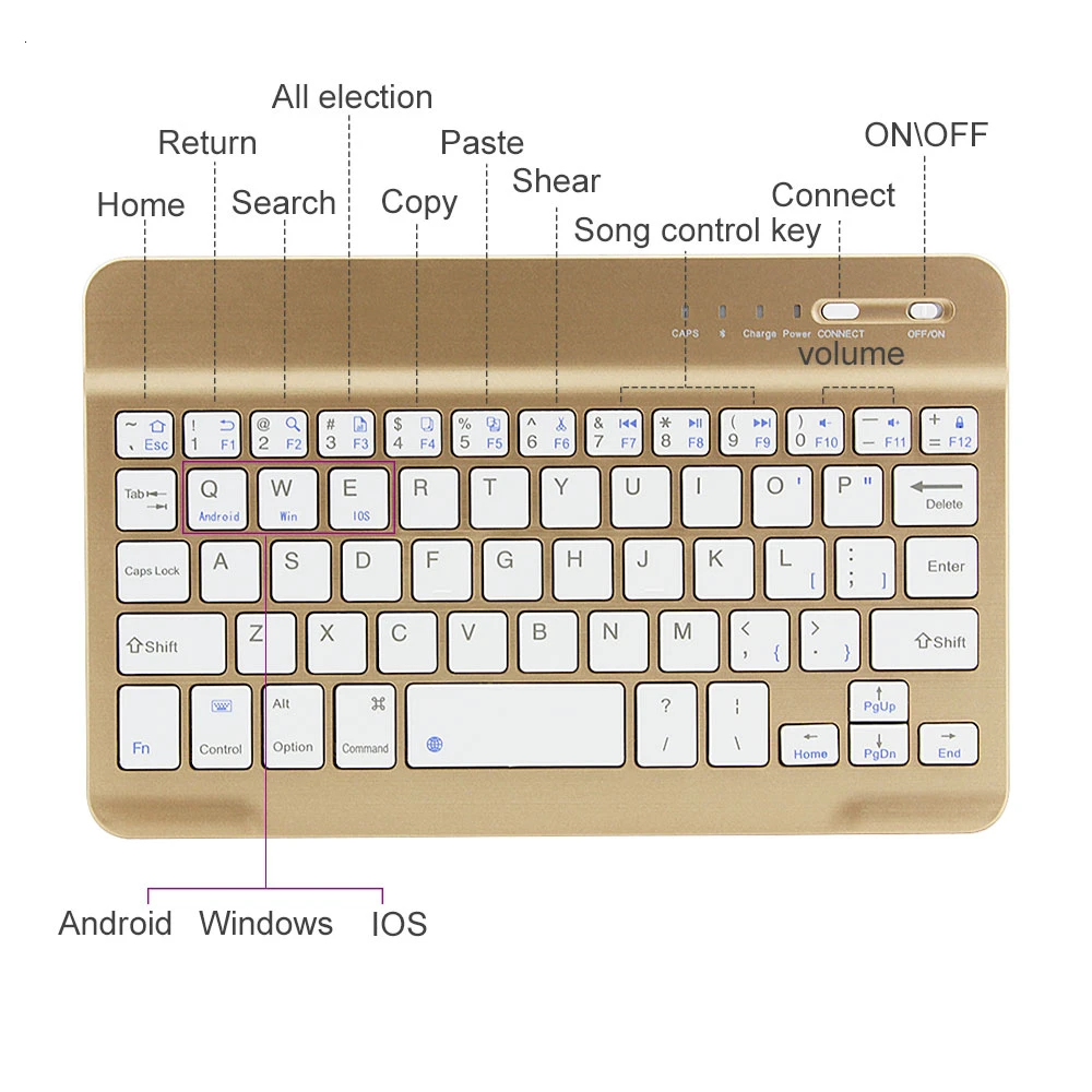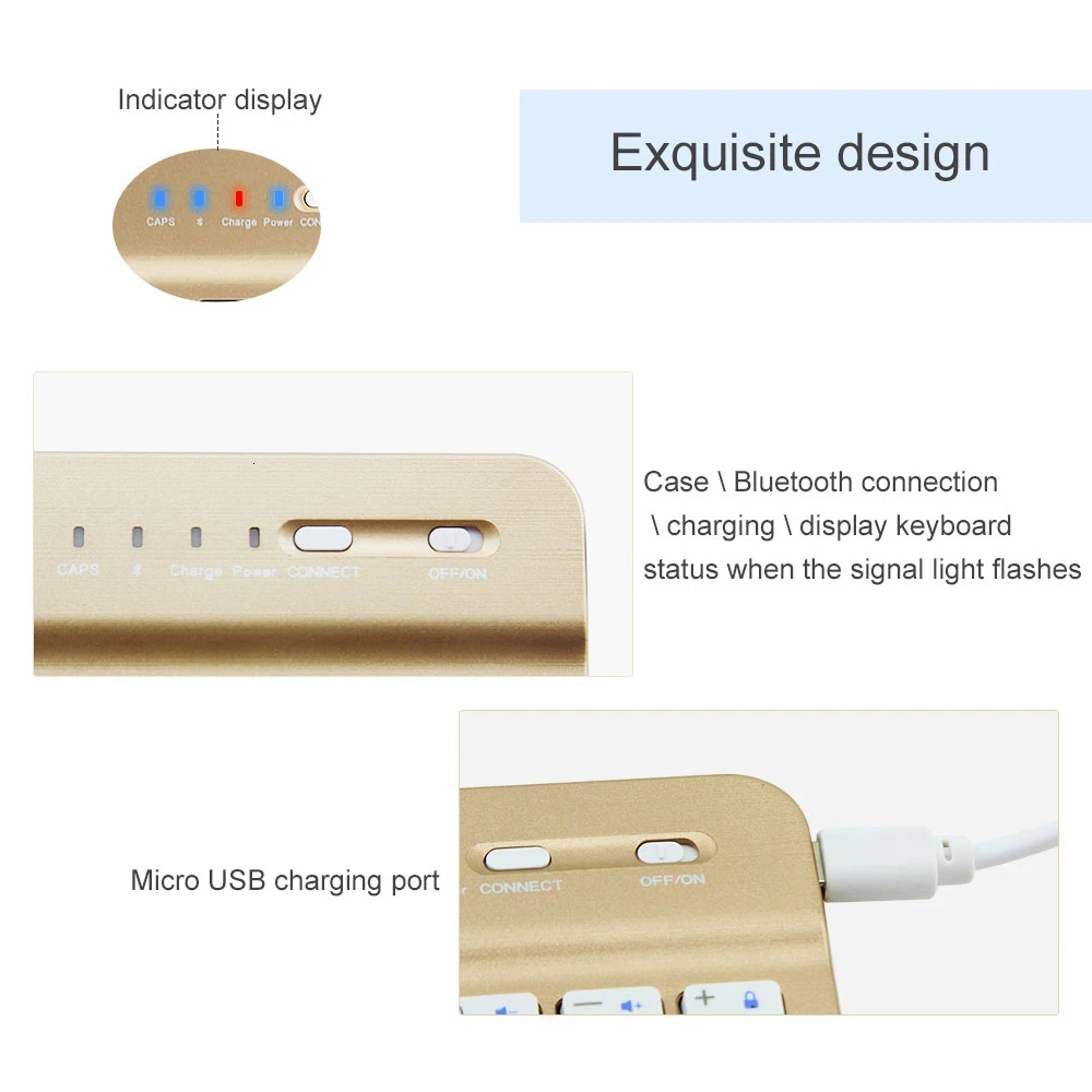 Беспроводная Bluetooth 3,0 клавиатура, портативная мини-клавиатура с 78 клавишами, ультратонкая клавиатура золотого цвета для Xiaomi, IOS, смартфонов, планшетов, ноутбуков