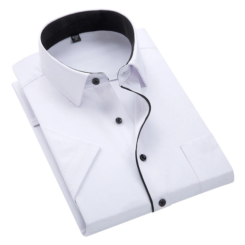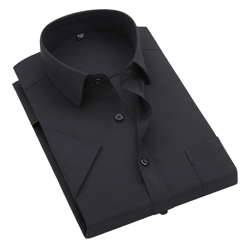 Мужская приталенная рубашка с короткими рукавами, черная формальная повседневная формальная рубашка с карманами, лето