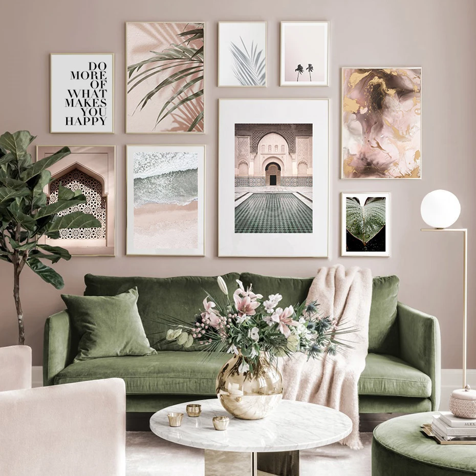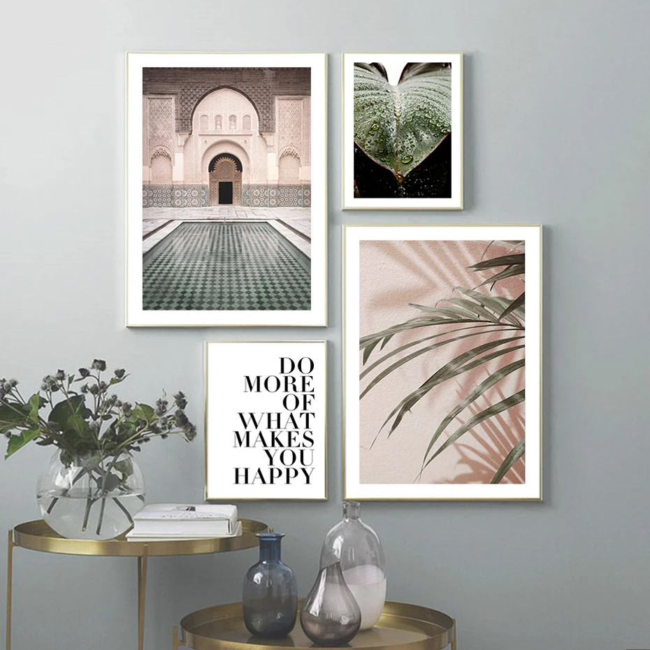 Марокканский берет природа тропический лист абстрактный постер Розовое Небо Картина на холсте настенные картины для гостиной домашний декор